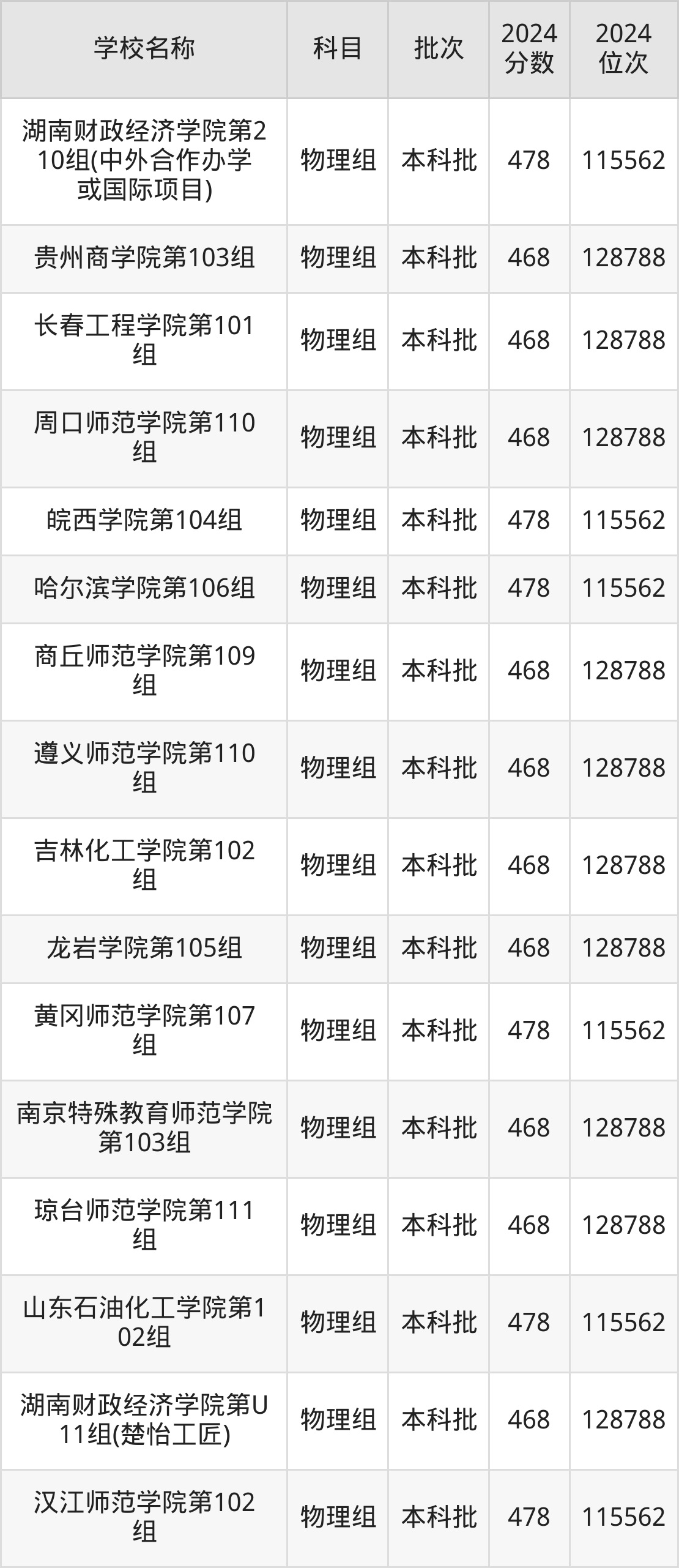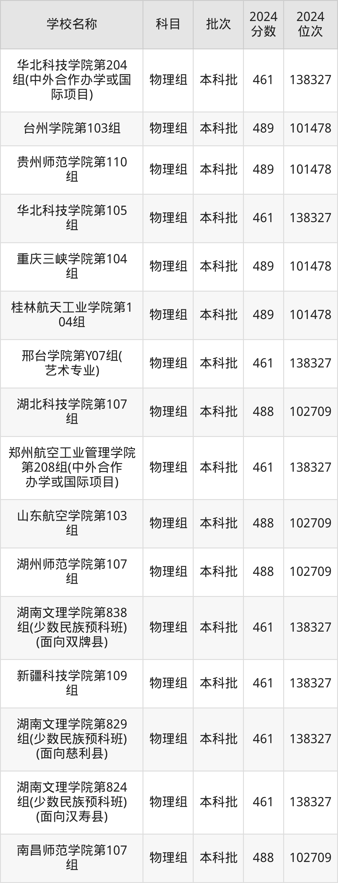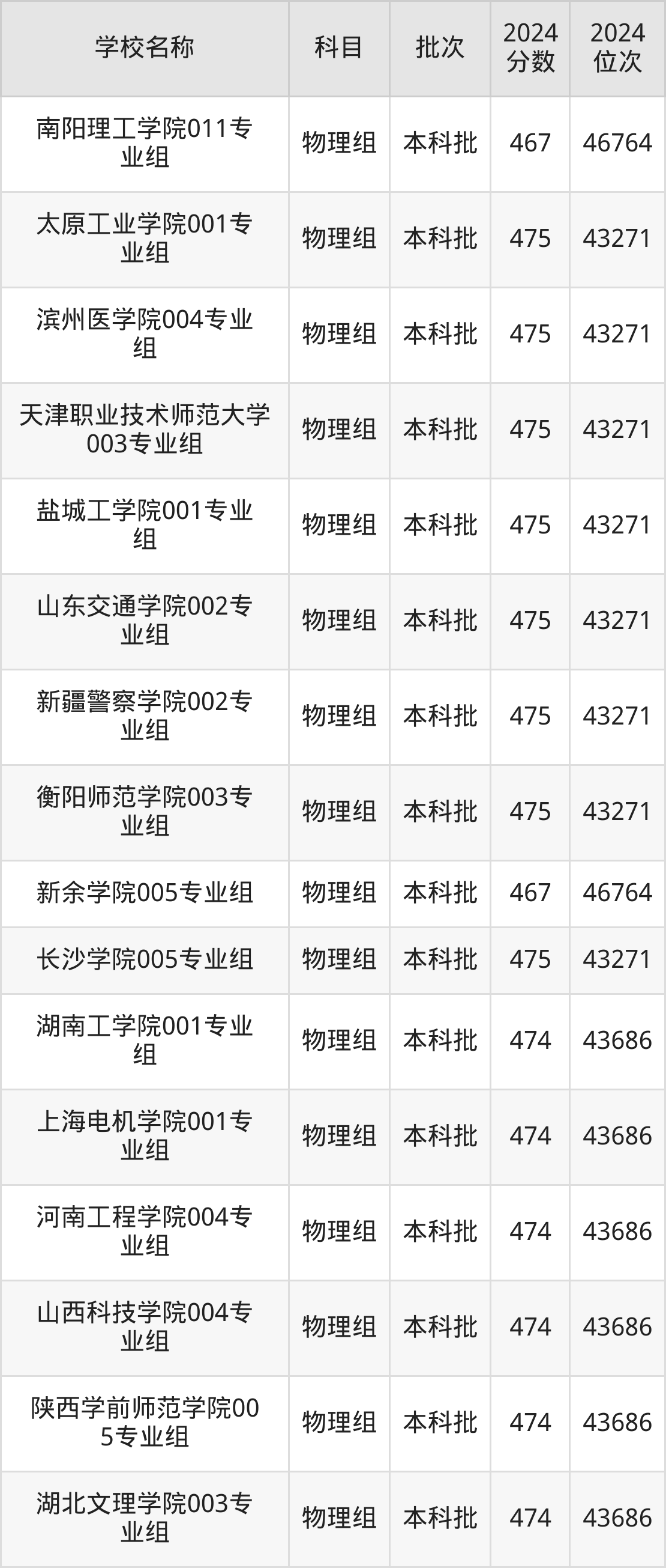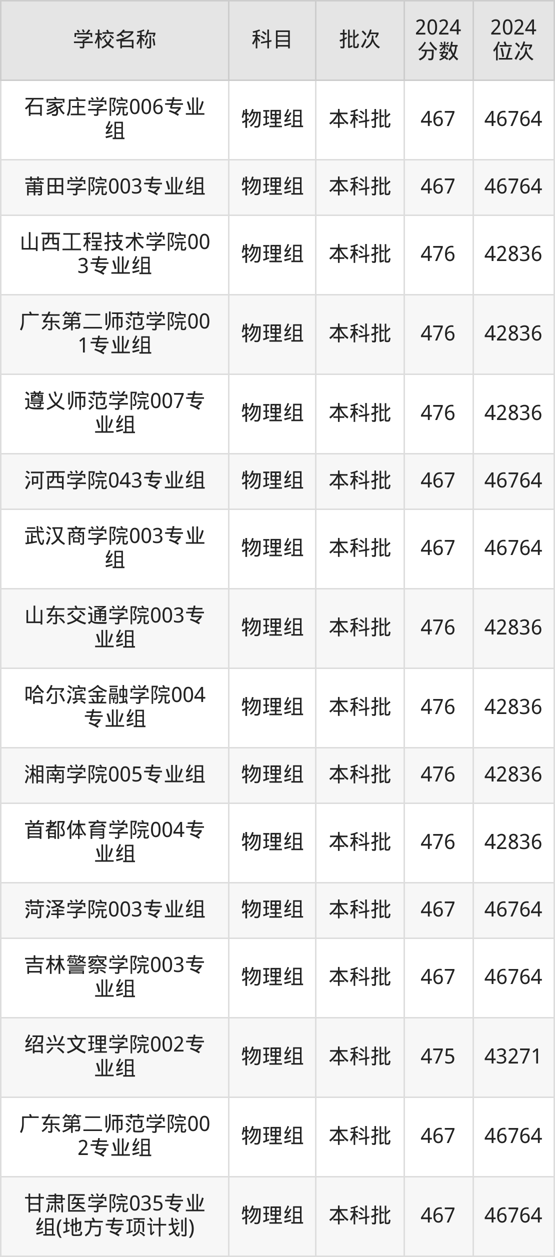 湖南高考物理组共有226所二本公办大学在460到490分之间录取,包含防灾科技学院、湖北第二师范学院、邵阳学院、丽水学院、怀化学院、四川音乐学院、嘉兴南湖学院、杭州医学院、长沙学院、湖南警察学院。