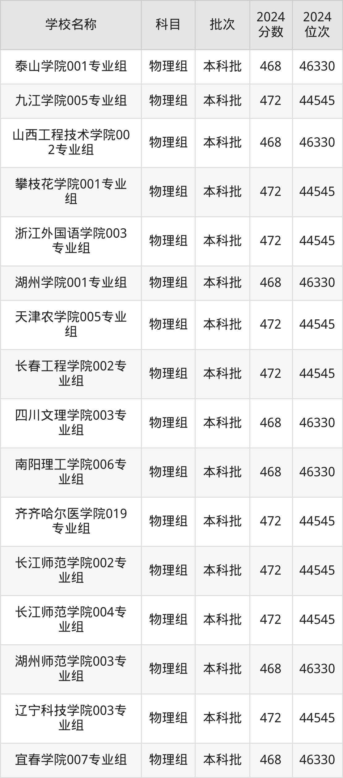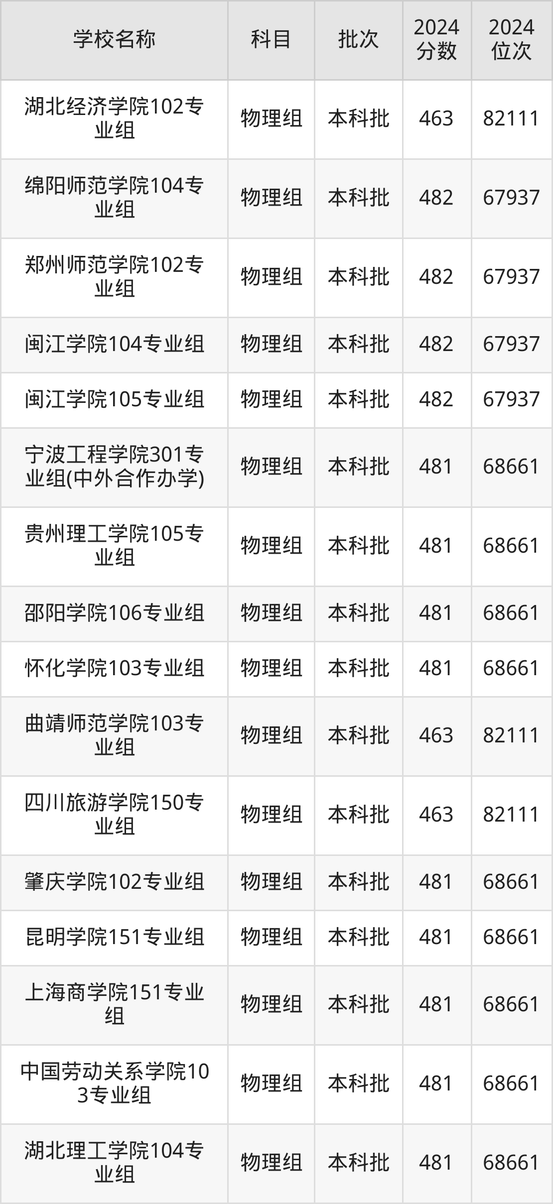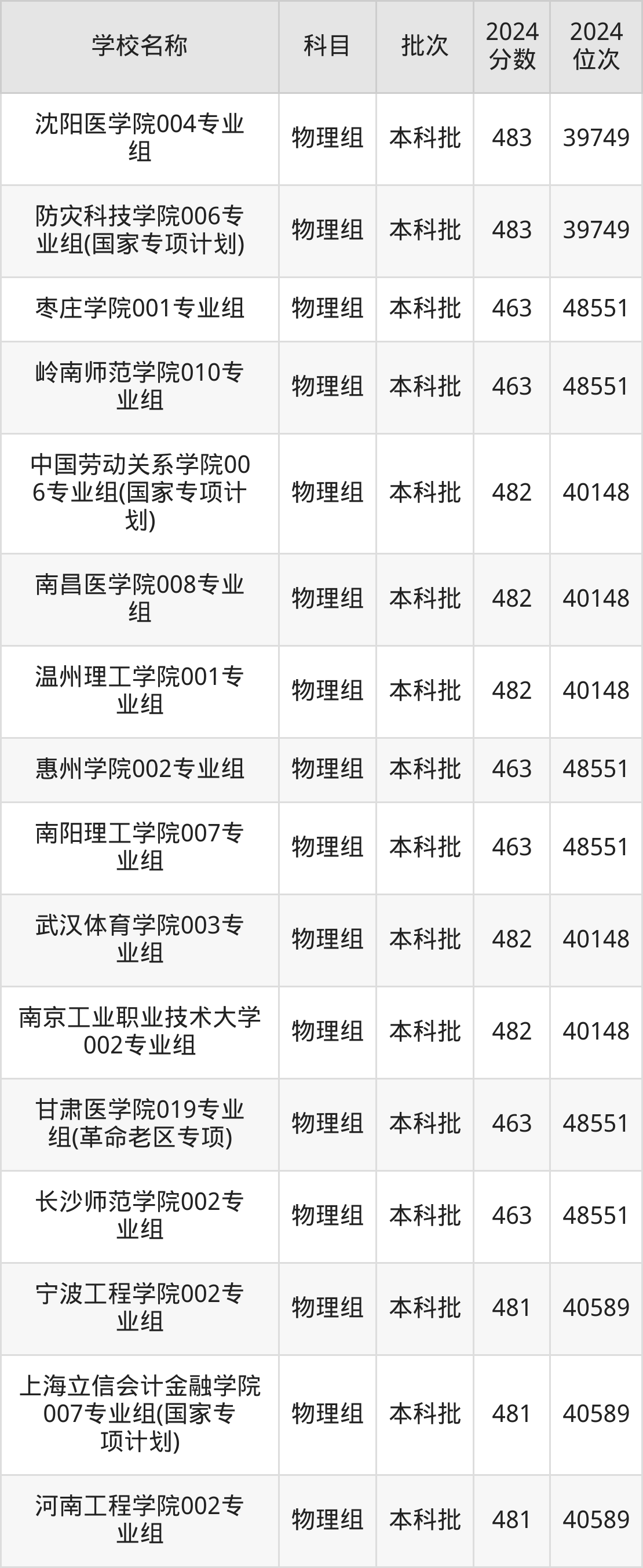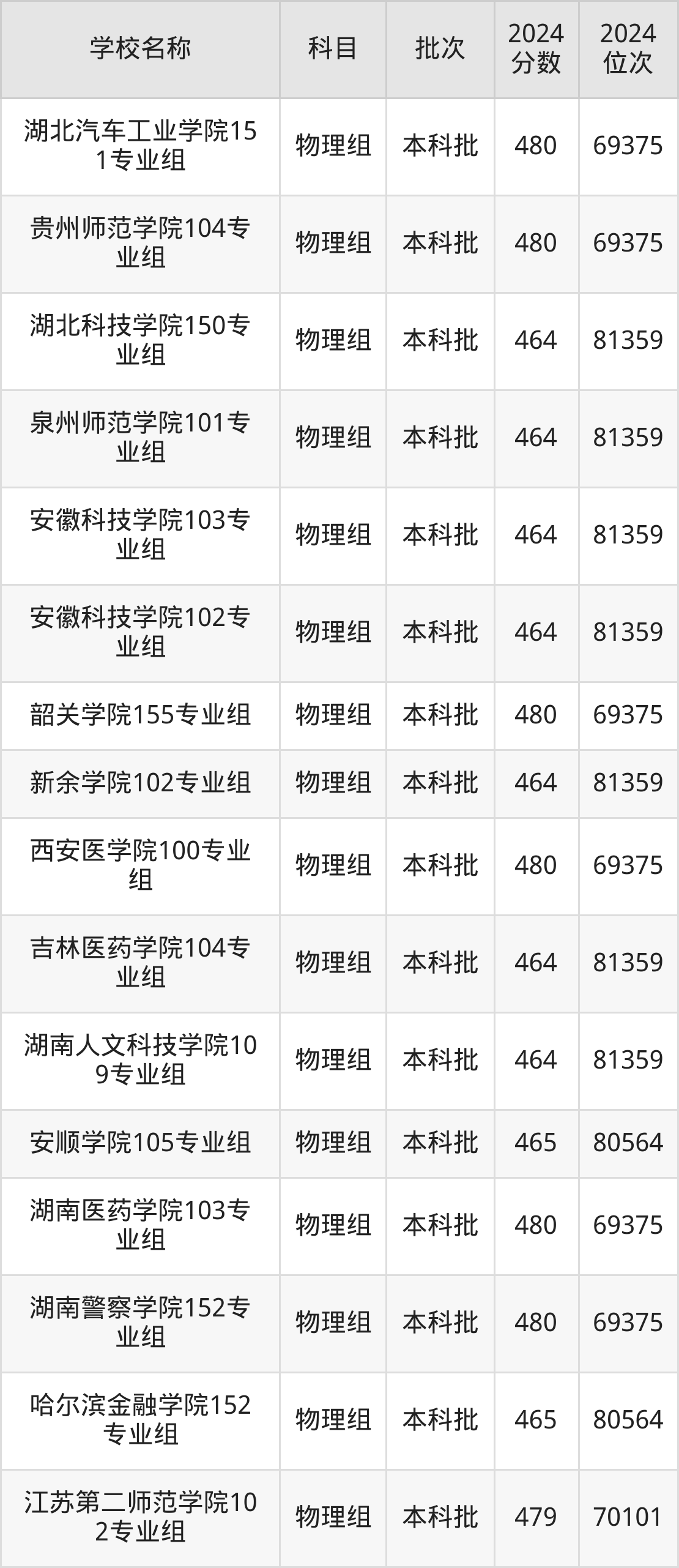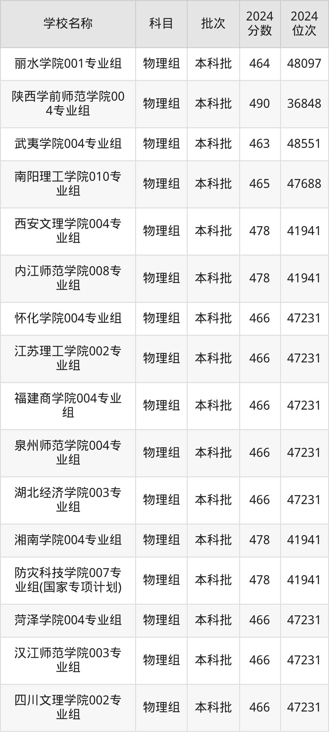 湖南高考物理组共有226所二本公办大学在460到490分之间录取,包含防灾科技学院、湖北第二师范学院、邵阳学院、丽水学院、怀化学院、四川音乐学院、嘉兴南湖学院、杭州医学院、长沙学院、湖南警察学院。