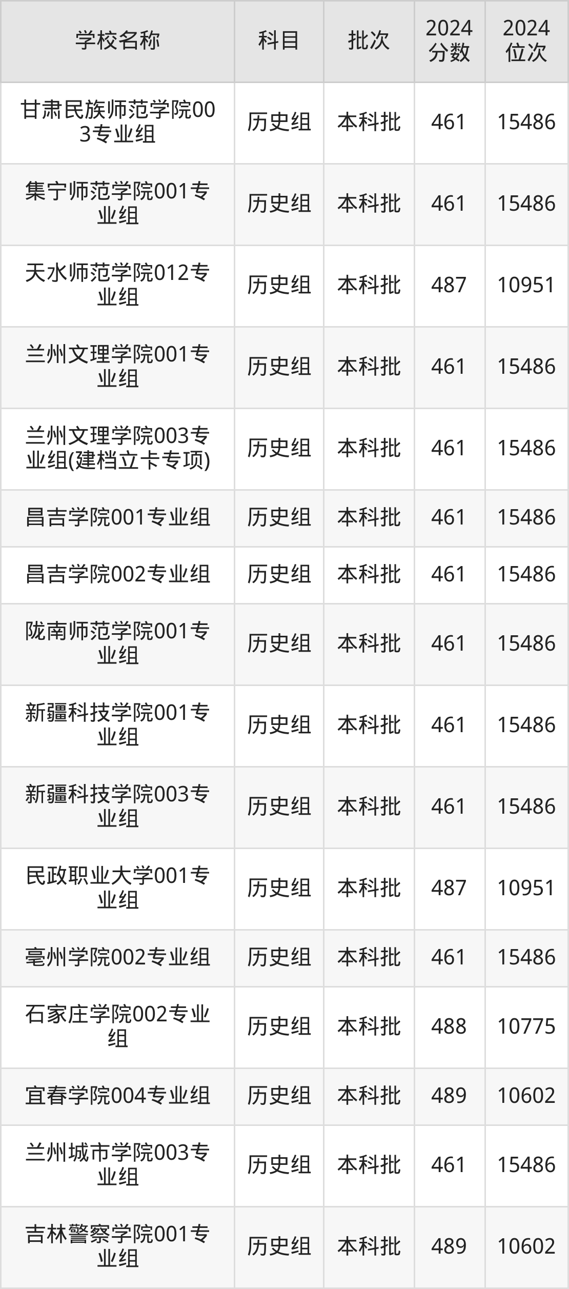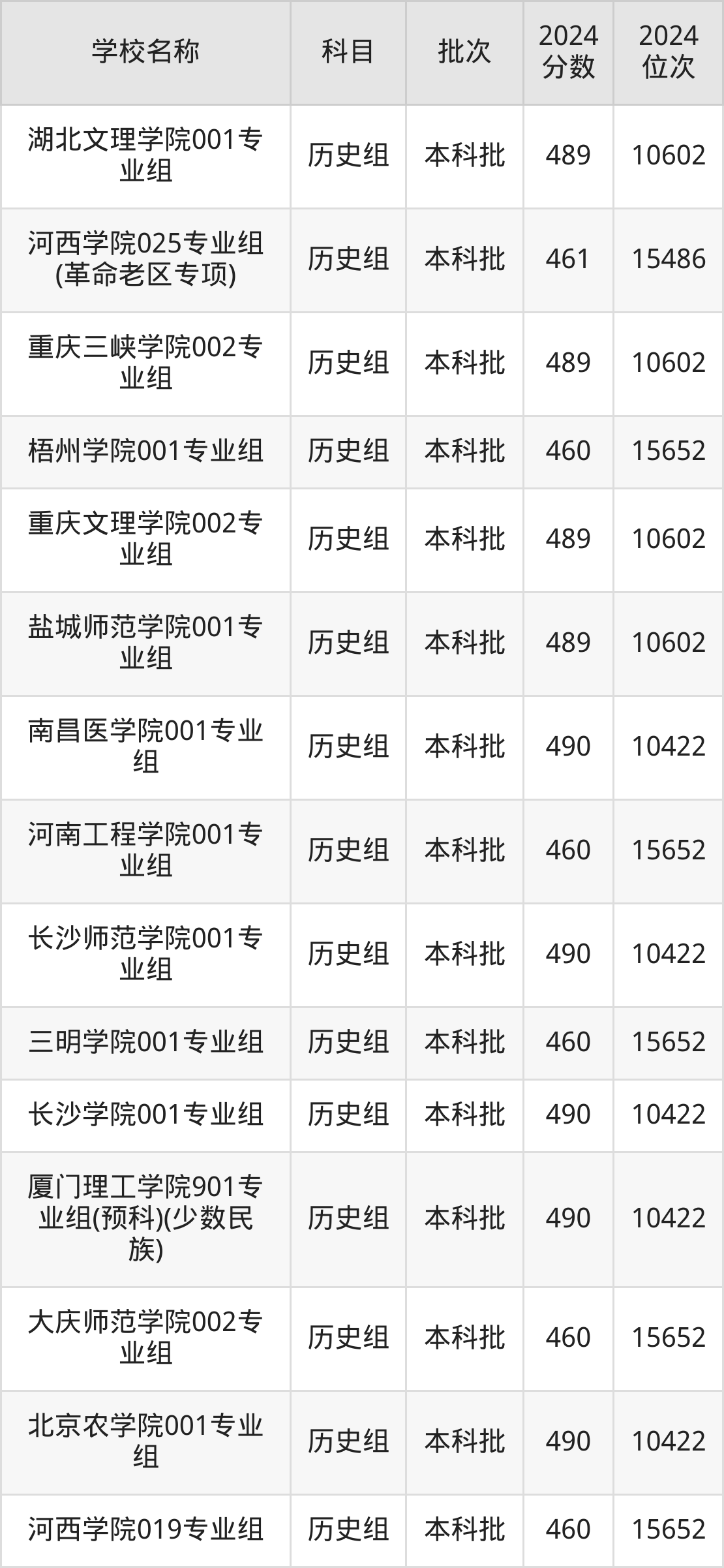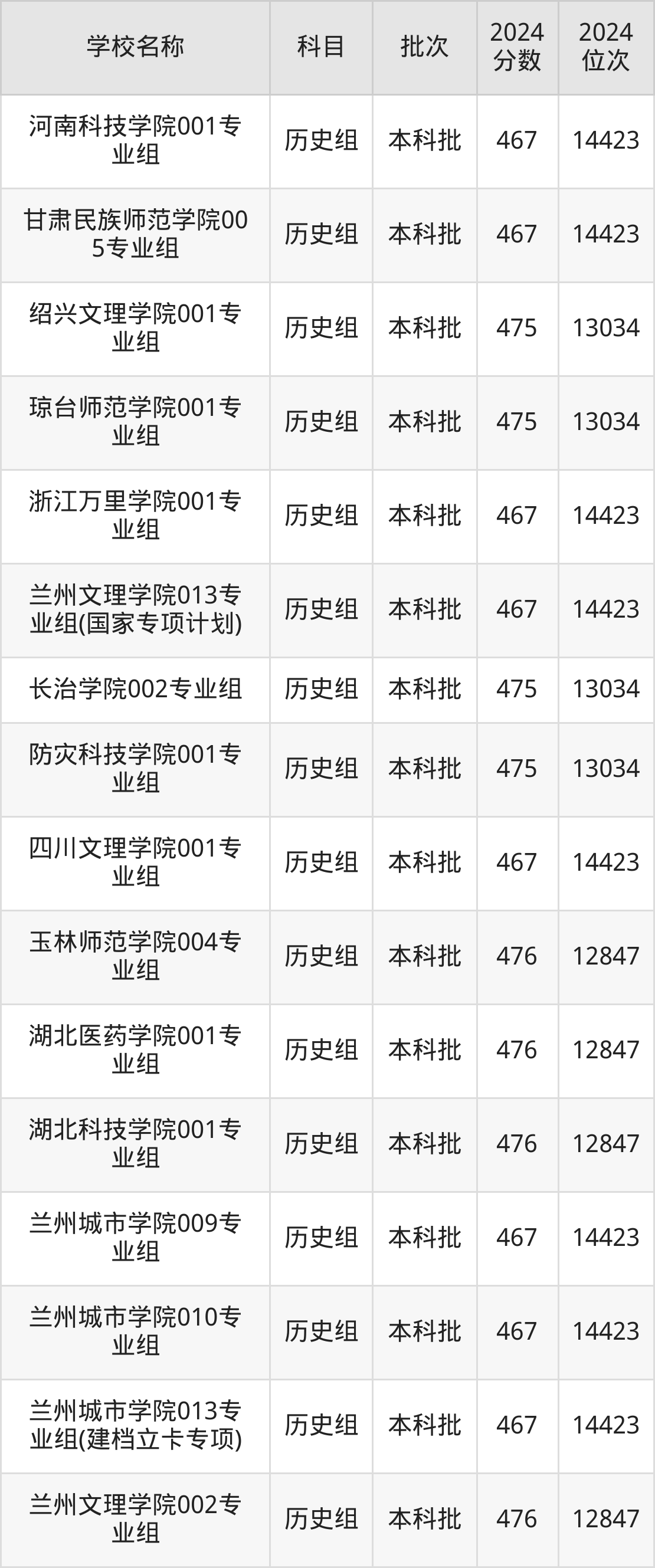 甘肃高考历史组共有126所二本公办大学在460到490分之间录取,包含南京工程学院、北京农学院、厦门理工学院、长沙学院、长沙师范学院、南昌医学院、盐城师范学院、重庆文理学院、重庆三峡学院、湖北文理学院。