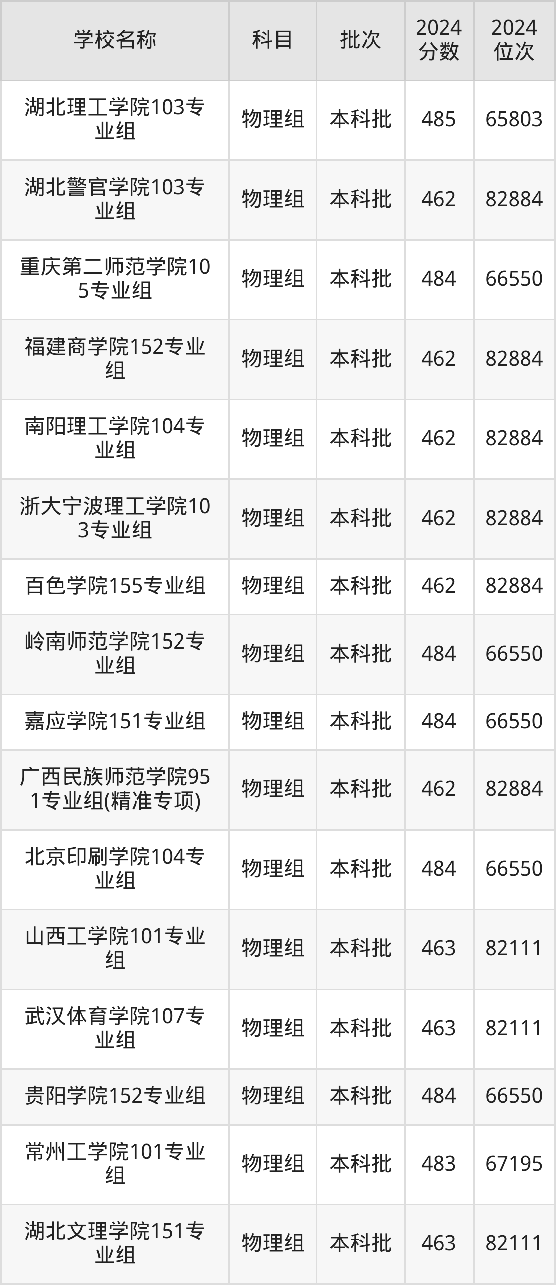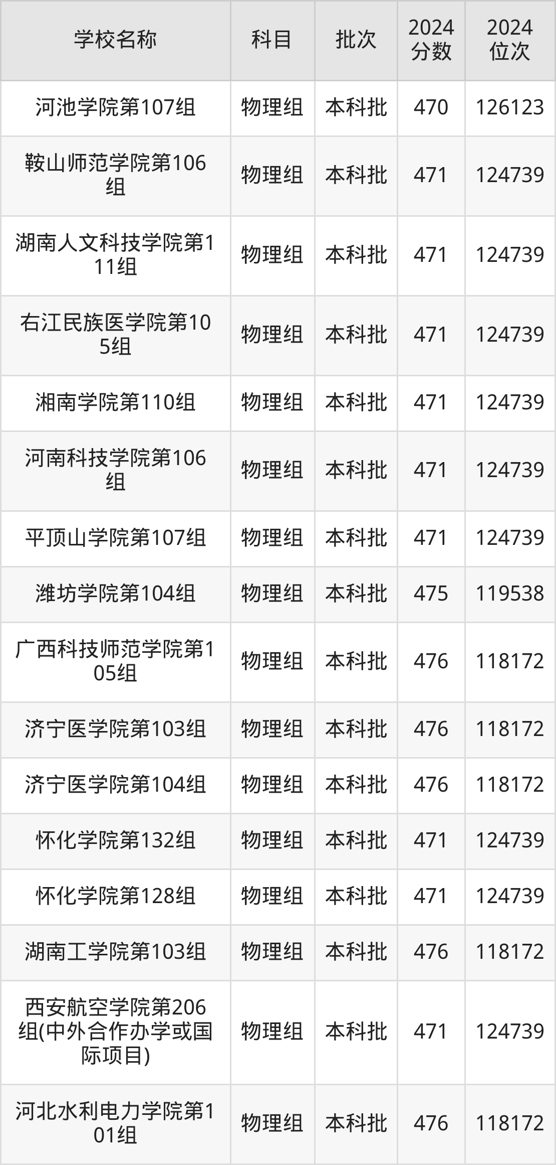 广西高考物理组共有125所二本公办大学在460到490分之间录取,包含广东石油化工学院、惠州学院、昆明学院、湖南财政经济学院、金陵科技学院、成都体育学院、上海电机学院、遵义师范学院、成都医学院、宜宾学院。