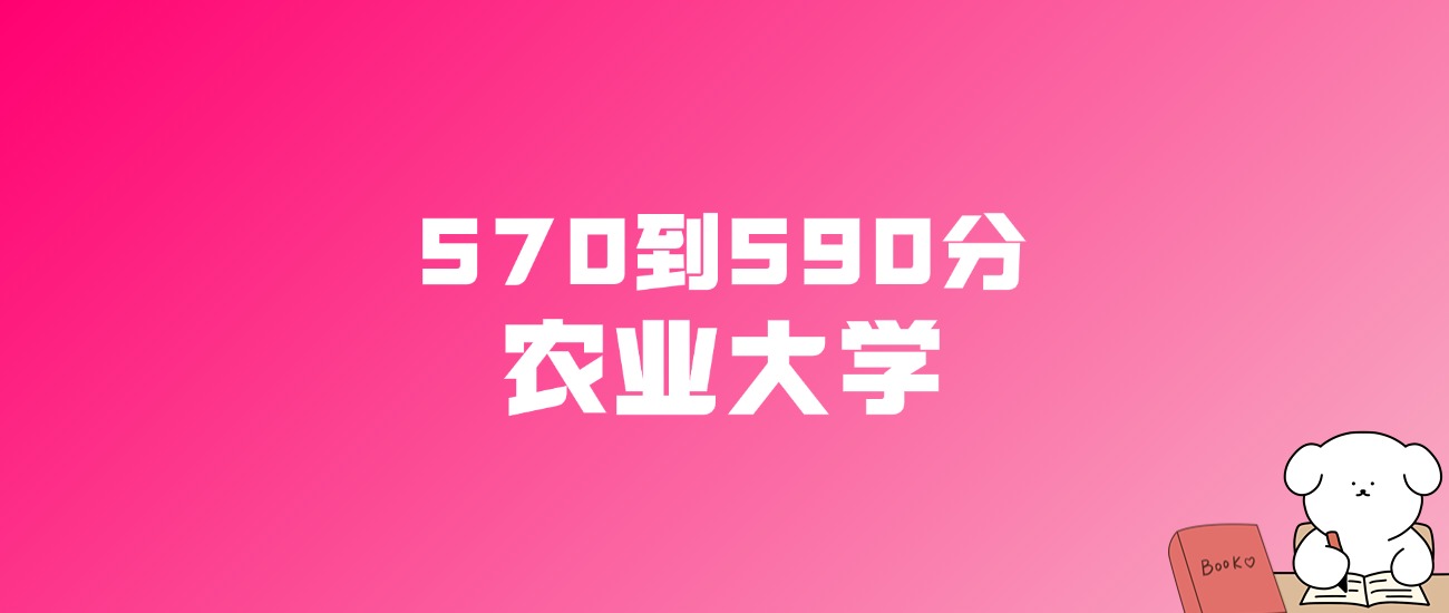 570到590分的农业大学有南京农业大学、华中农业大学、东北农业大学、四川农业大学、西北农林科技大学、华南农业大学、中国农业大学、吉林大学(农林类及护理学)、中国农业大学(中外合作)、福建农林大学(定向专业,上杭县)等。