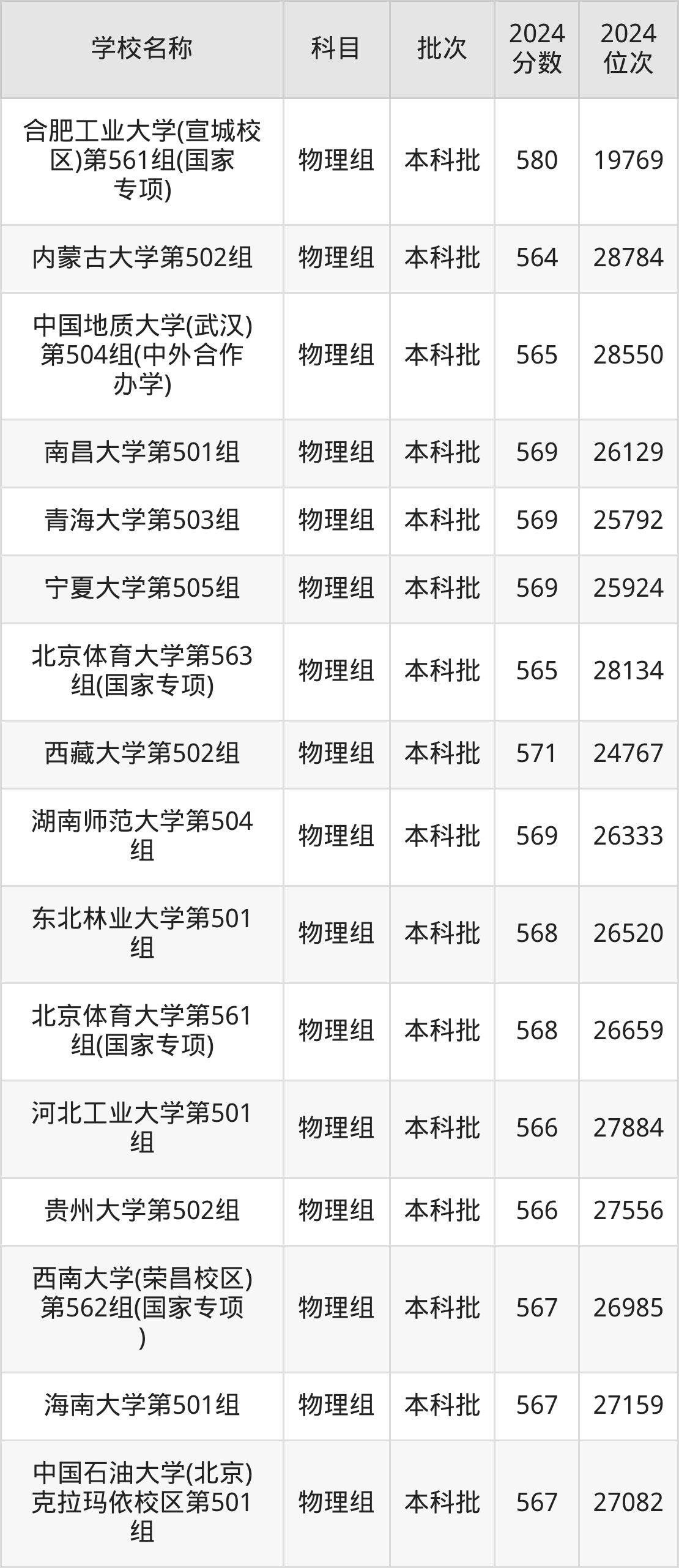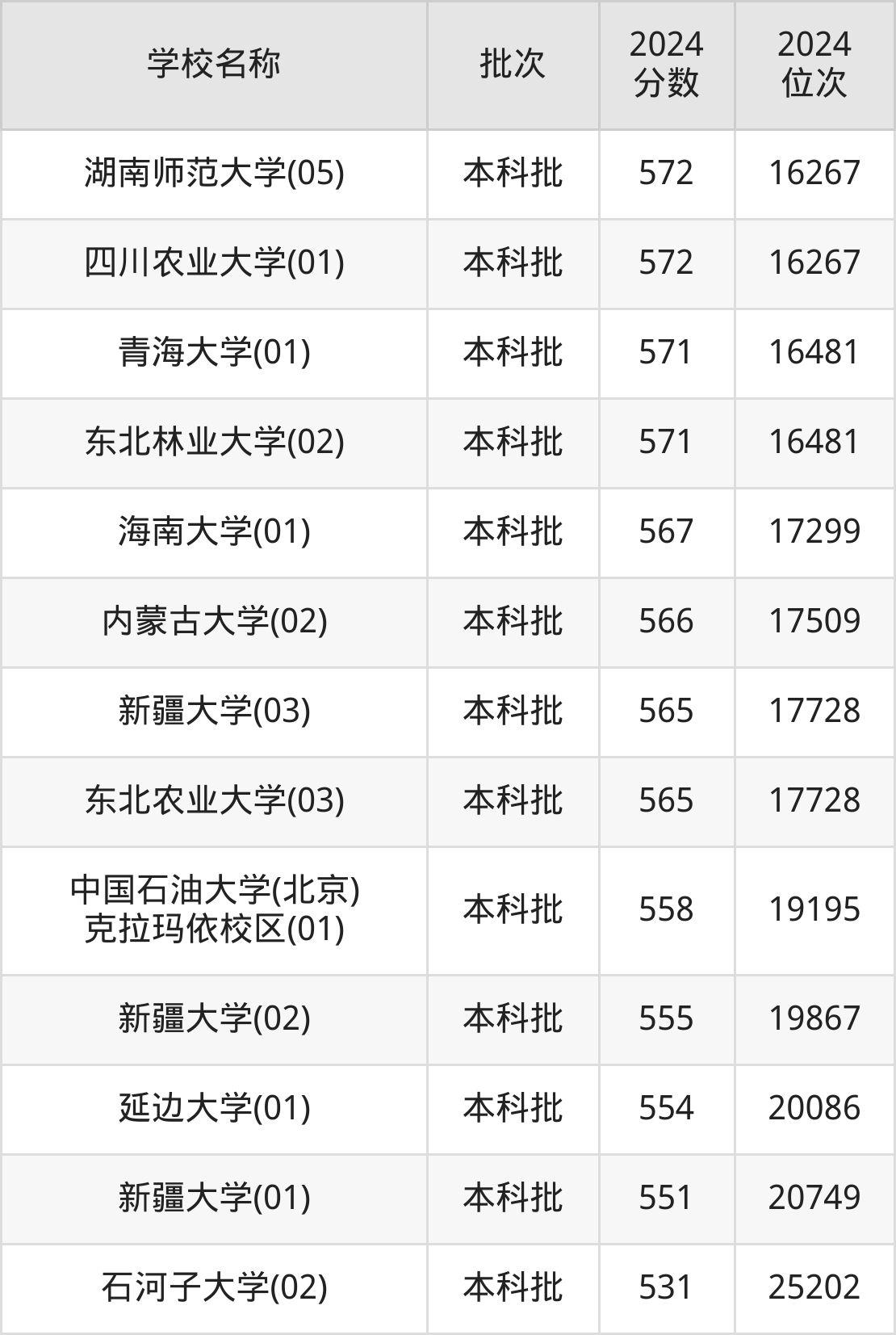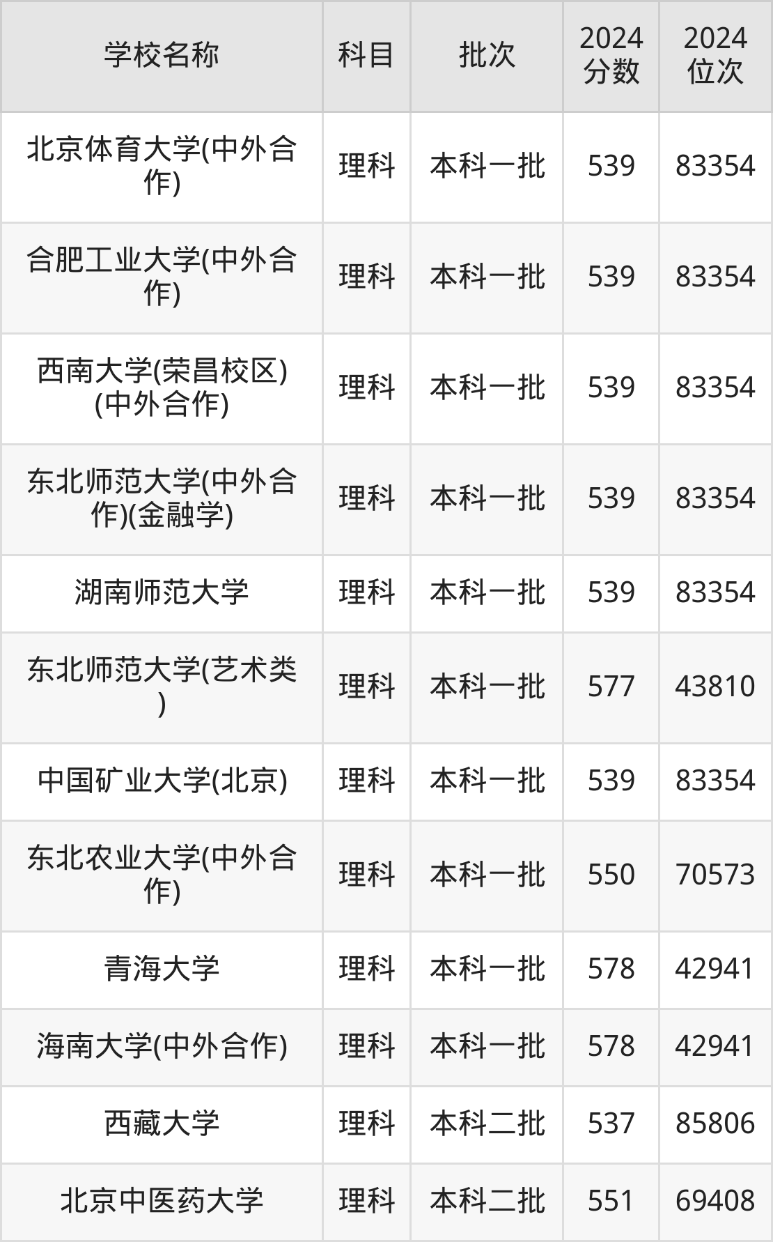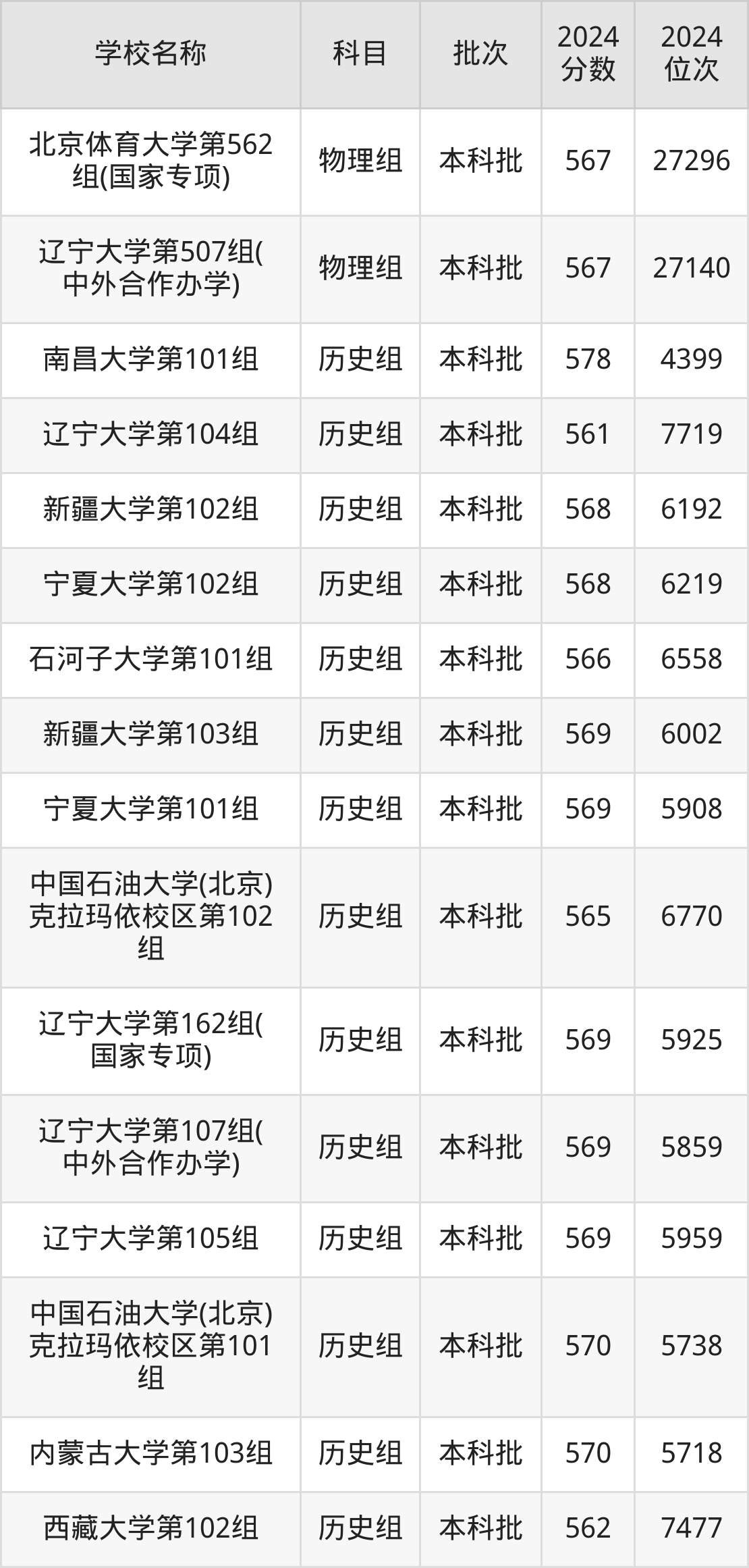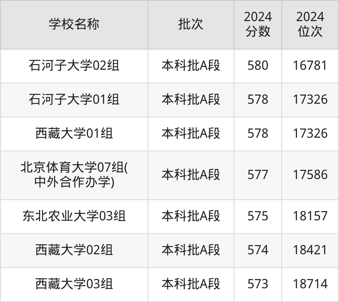 天津高考共有4所211大学在530到580分之间录取,包含石河子大学、西藏大学、北京体育大学、东北农业大学。