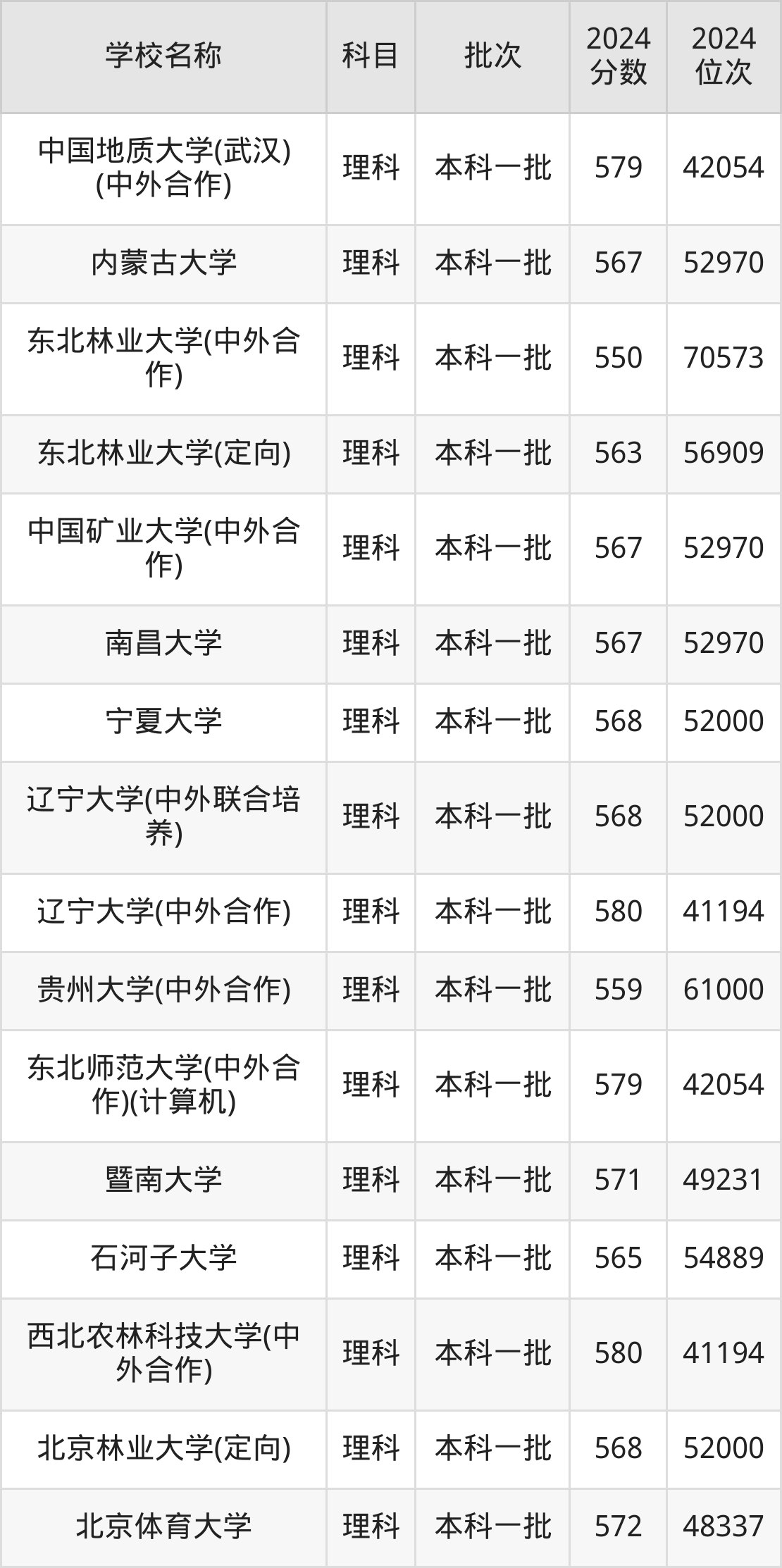 530到580分的211大学有云南大学、西南大学、华中农业大学、内蒙古大学、贵州大学、中国地质大学(武汉)、南昌大学、东北林业大学、南京农业大学、延边大学等。