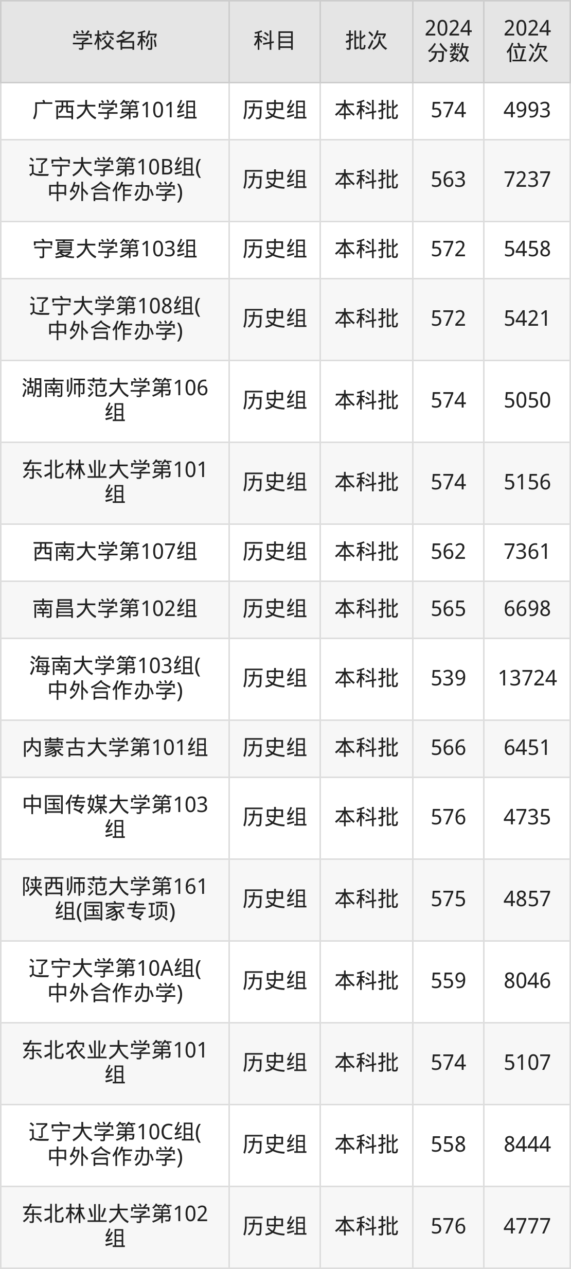 江西高考历史组共有20所211大学在530到580分之间录取,包含南昌大学、海南大学、内蒙古大学、上海大学、云南大学、北京体育大学、湖南师范大学、新疆大学、辽宁大学、东北林业大学。