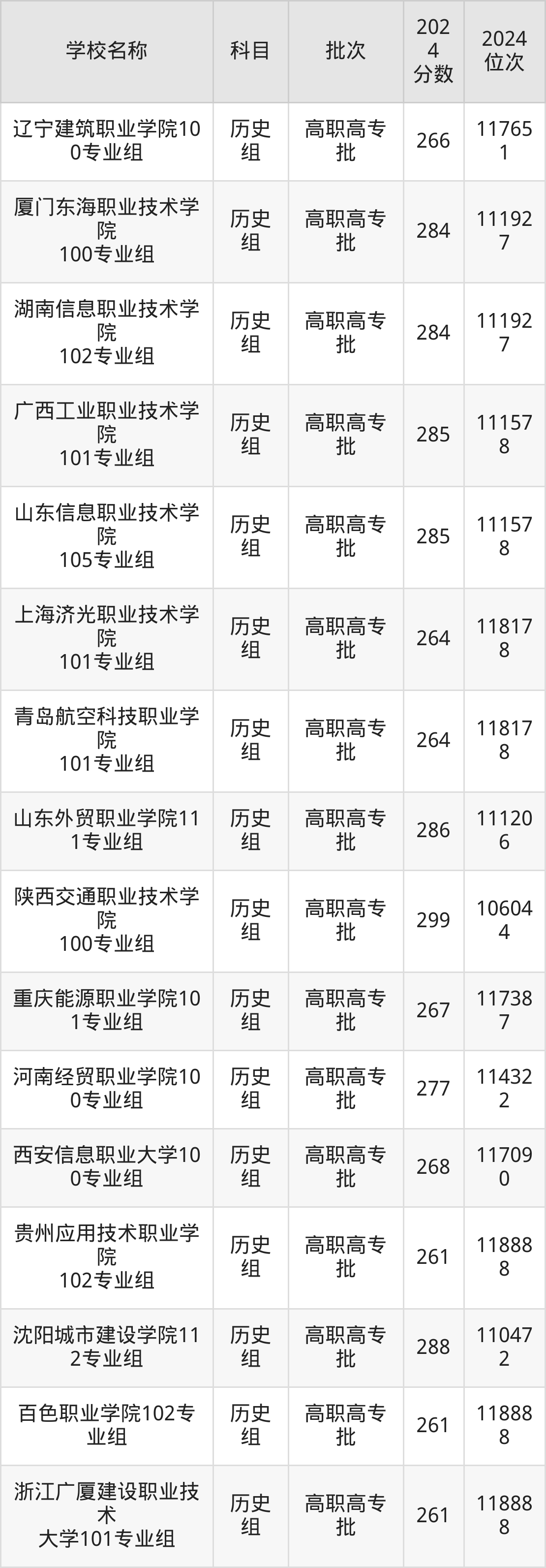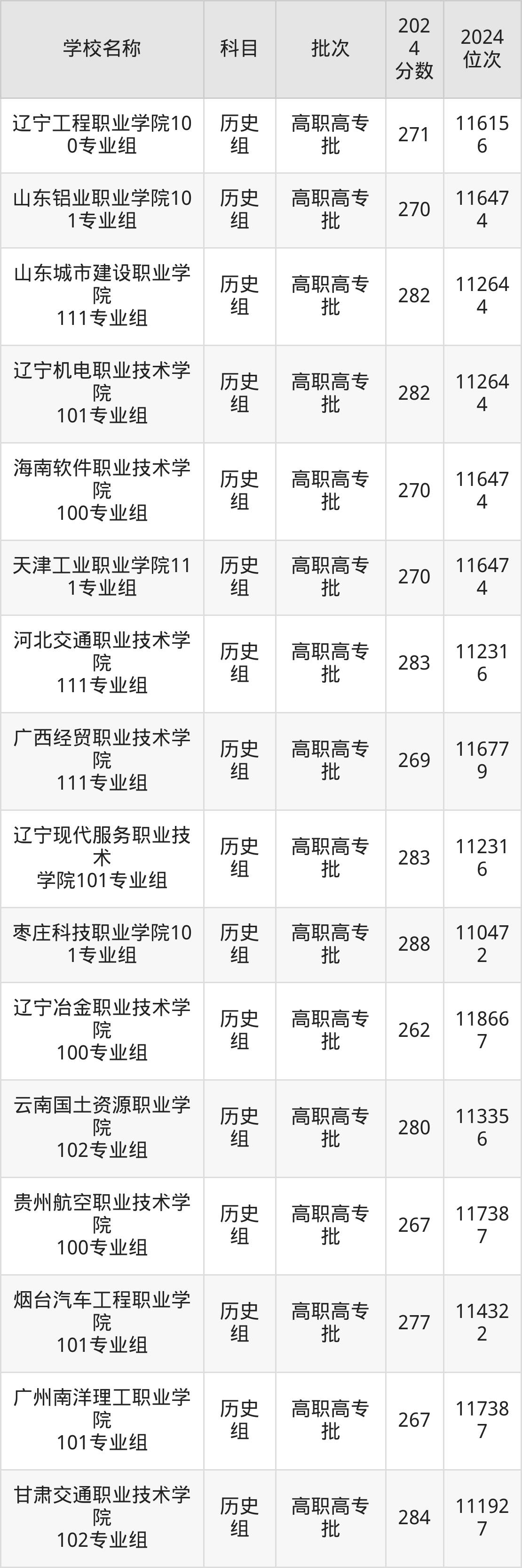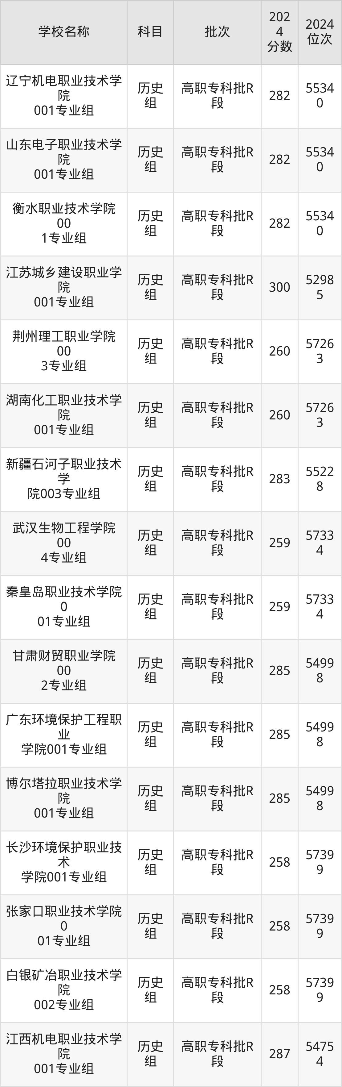 辽宁高考历史组共有55所理科大学在250到300分之间录取,包含湖南工业职业技术学院、江西航空职业技术学院、赤峰工业职业技术学院、江西信息应用职业技术学院、昆明冶金高等专科学校、秦皇岛职业技术学院、兰州石化职业技术大学、潍坊环境工程职业学院、江西水利职业学院、山东外贸职业学院。