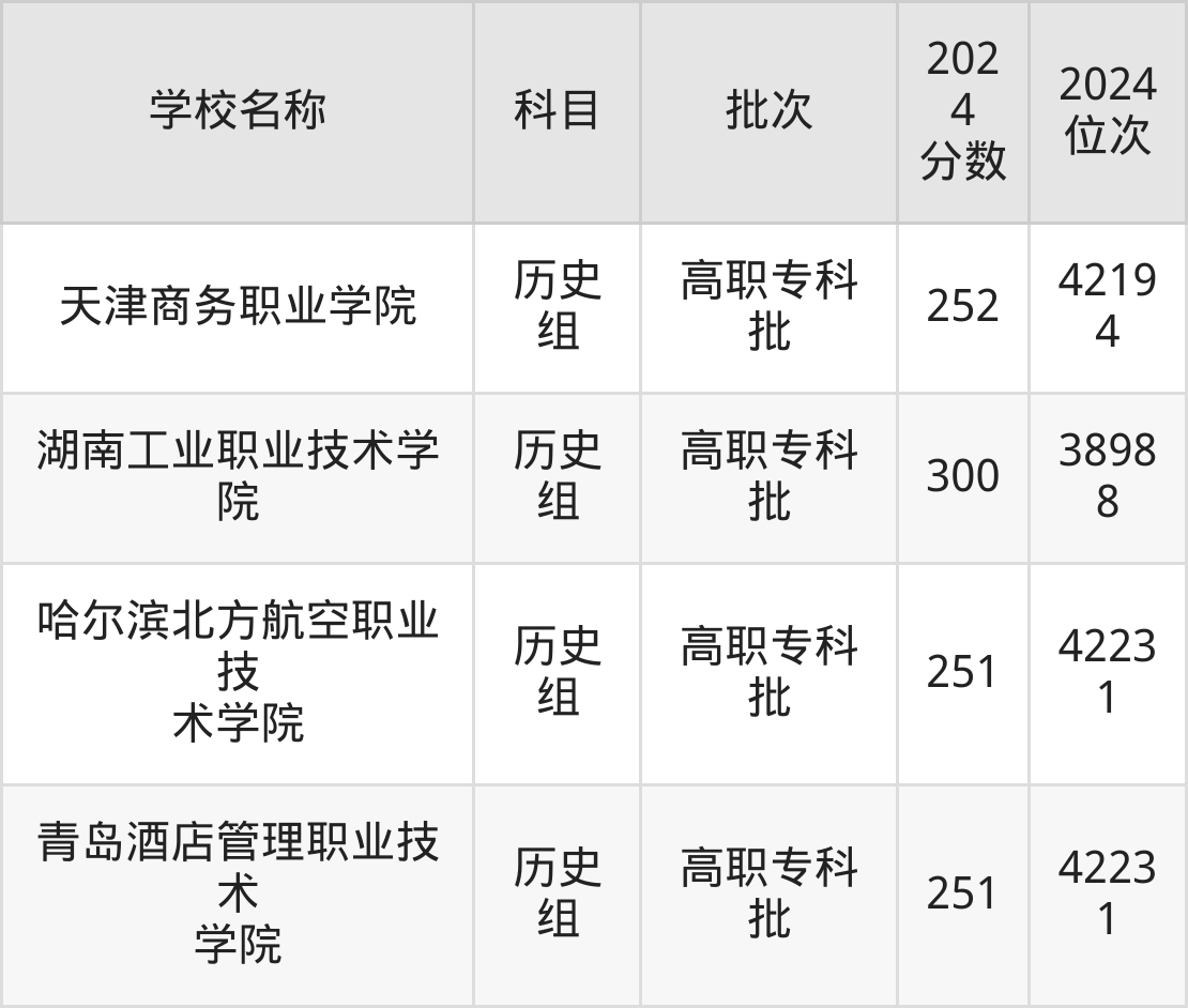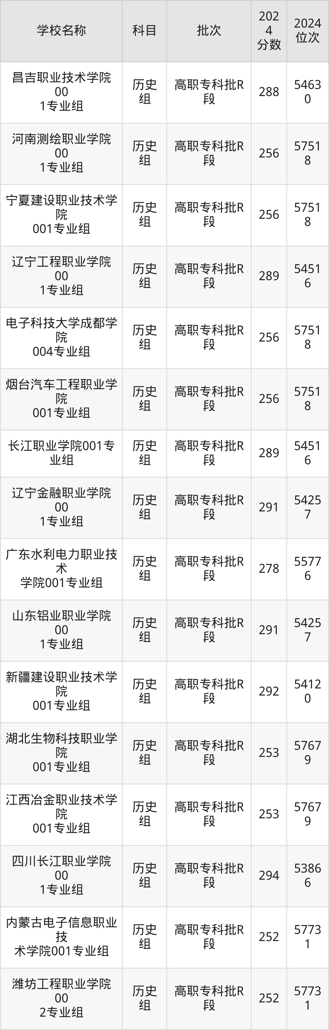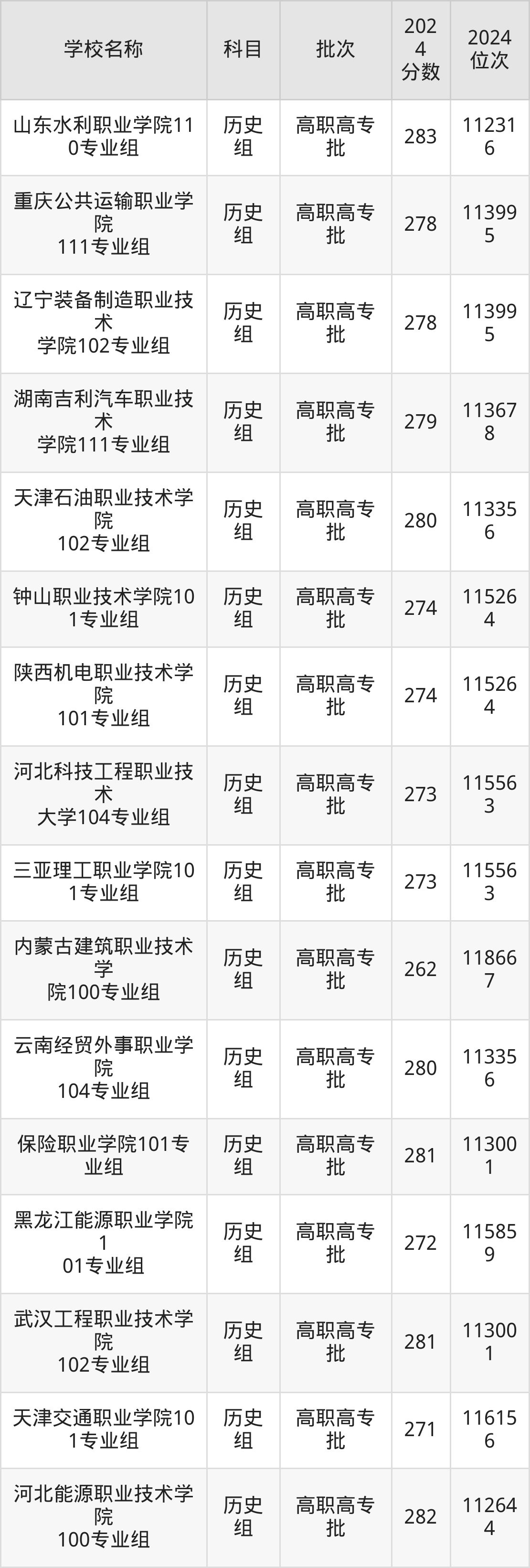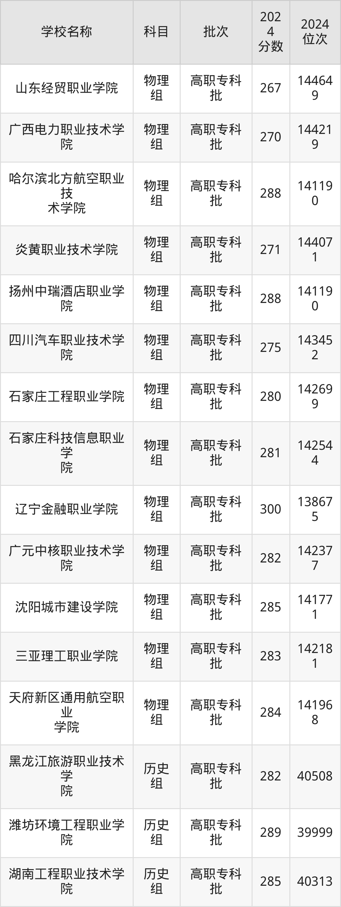 辽宁高考历史组共有55所理科大学在250到300分之间录取,包含湖南工业职业技术学院、江西航空职业技术学院、赤峰工业职业技术学院、江西信息应用职业技术学院、昆明冶金高等专科学校、秦皇岛职业技术学院、兰州石化职业技术大学、潍坊环境工程职业学院、江西水利职业学院、山东外贸职业学院。