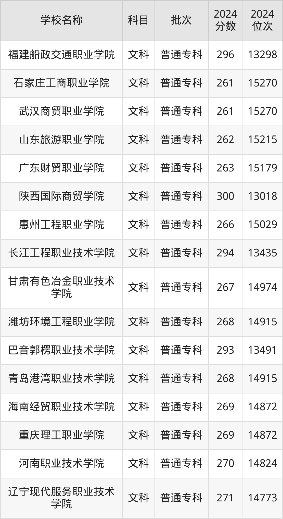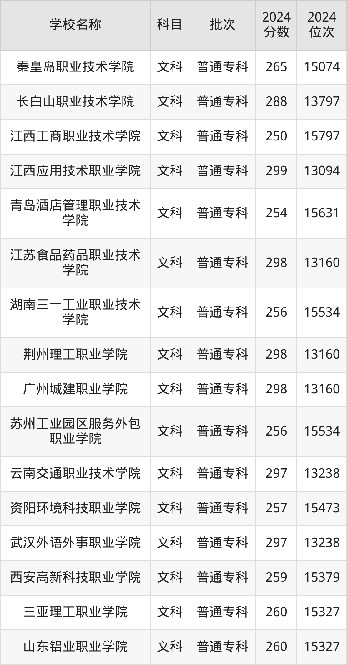 青海高考文科共有60所理科大学在250到300分之间录取,包含陕西国际商贸学院、江苏城乡建设职业学院、江西应用技术职业学院、江苏食品药品职业技术学院、荆州理工职业学院、广州城建职业学院、云南交通职业技术学院、武汉外语外事职业学院、福建船政交通职业学院、长江工程职业技术学院。