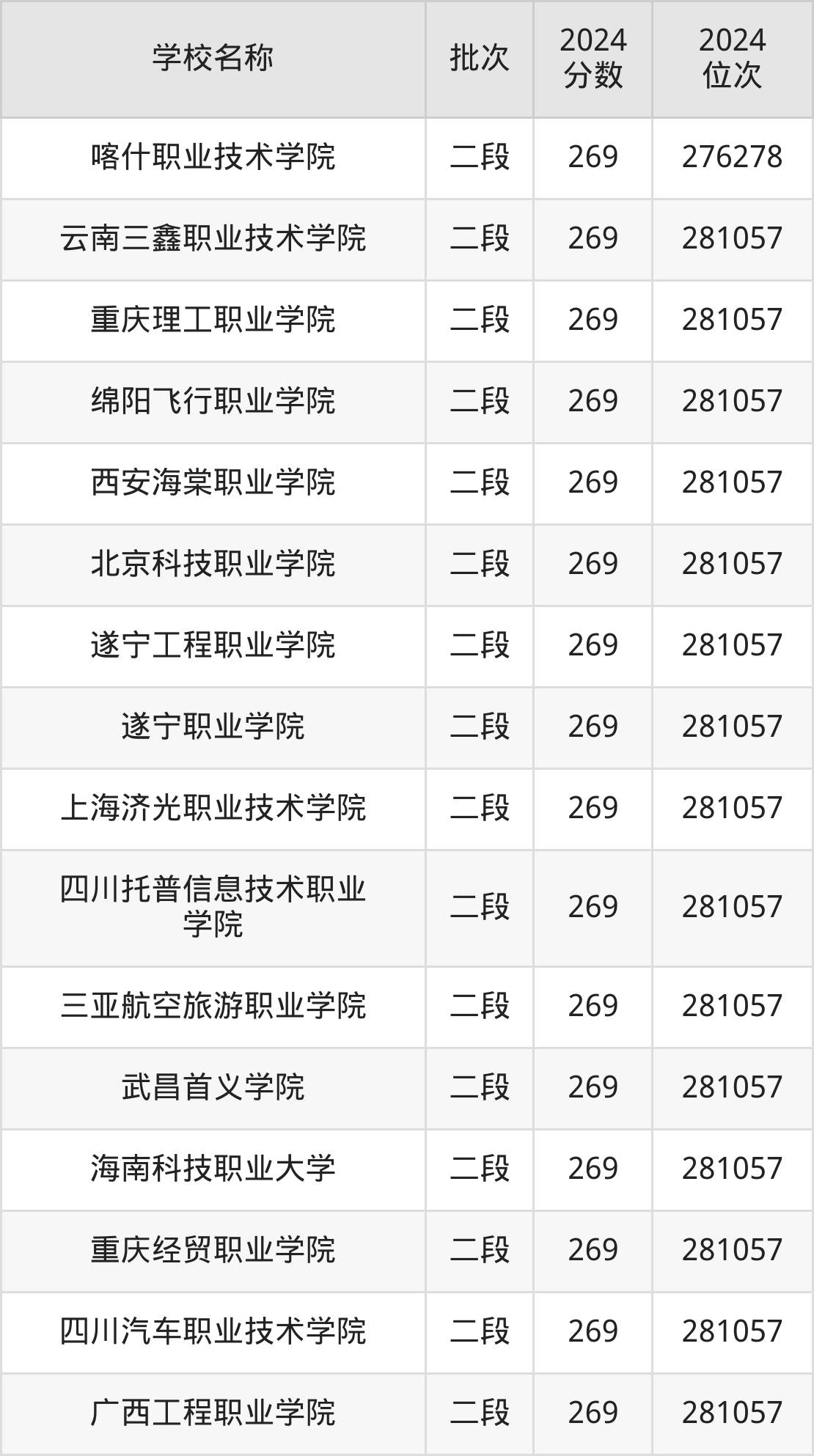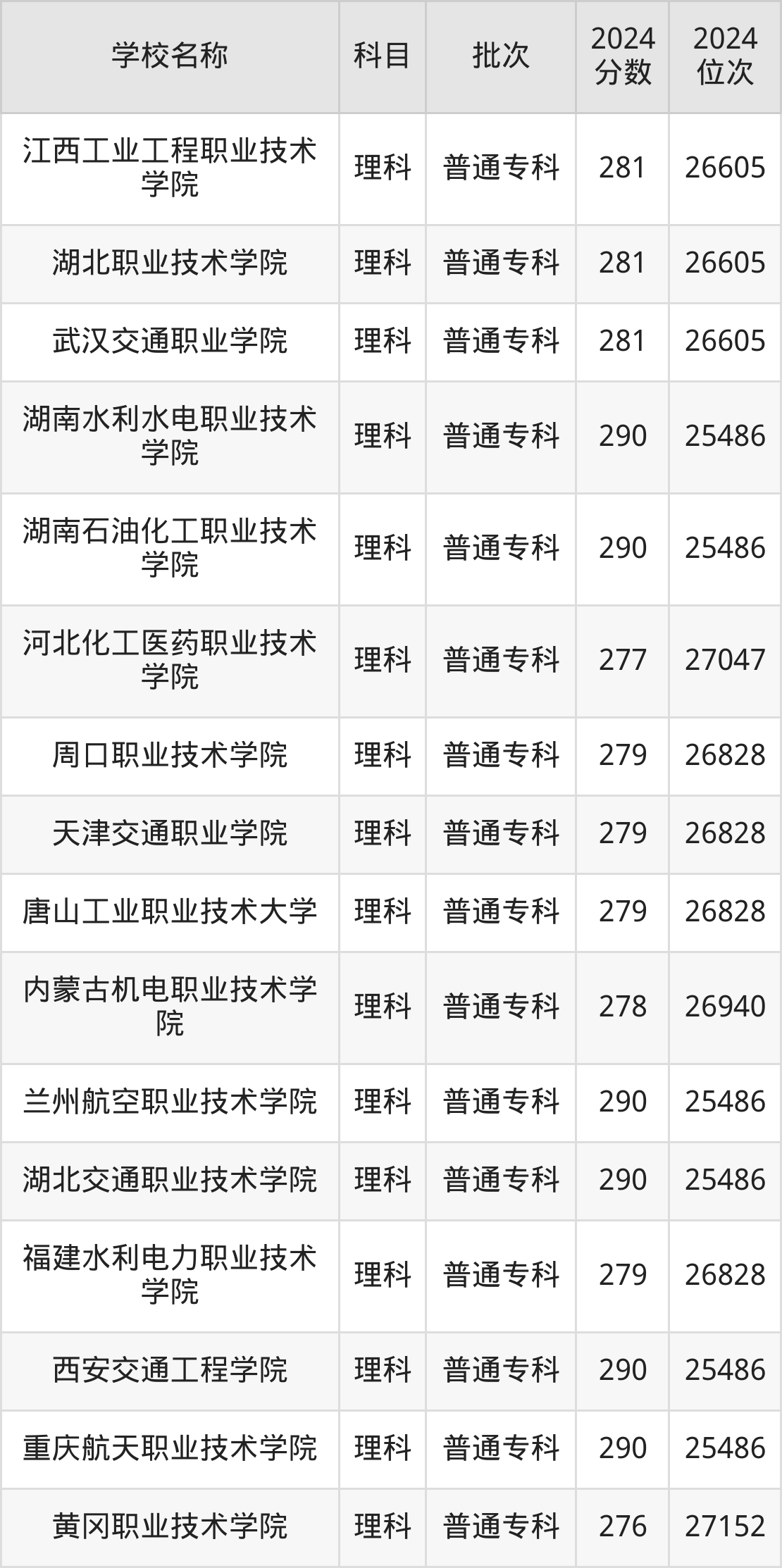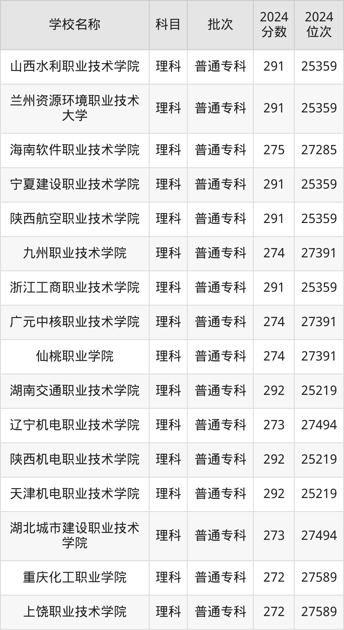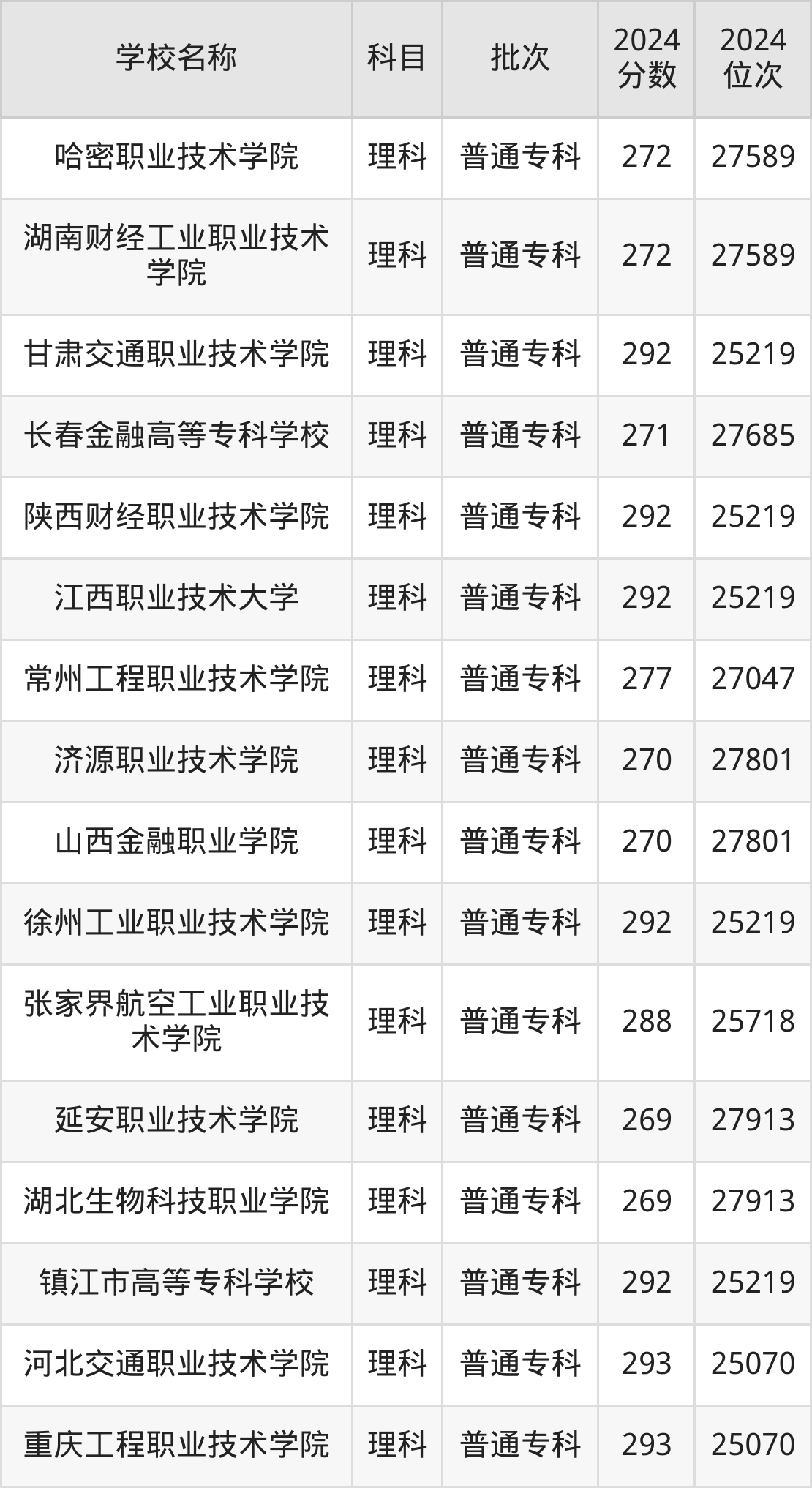 青海高考理科共有123所理科大学在250到300分之间录取,包含天津电子信息职业技术学院、四川交通职业技术学院、黑龙江交通职业技术学院、武汉铁路桥梁职业学院、安徽电气工程职业技术学院、北京工业职业技术学院、青海职业技术大学、广州民航职业技术学院(中外合作)、南京科技职业学院、连云港职业技术学院。