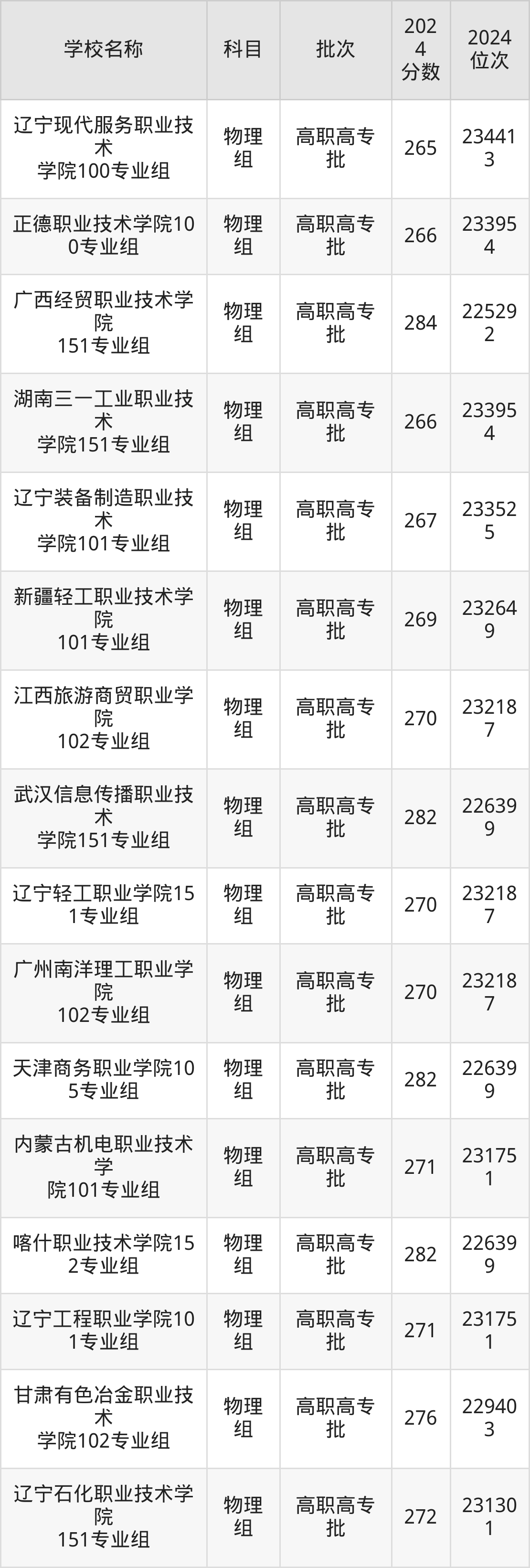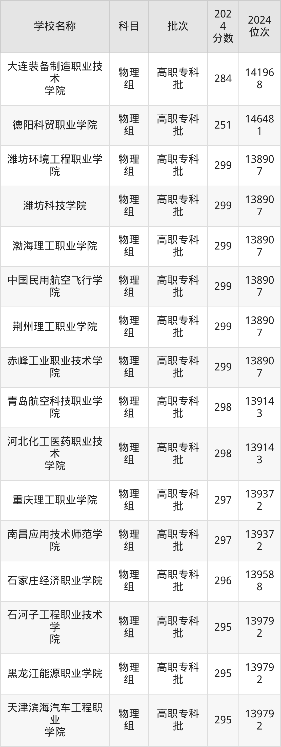 辽宁高考物理组共有45所理科大学在250到300分之间录取,包含辽宁金融职业学院、潍坊环境工程职业学院、潍坊科技学院、渤海理工职业学院、中国民用航空飞行学院、荆州理工职业学院、赤峰工业职业技术学院、青岛航空科技职业学院、河北化工医药职业技术学院、重庆理工职业学院。