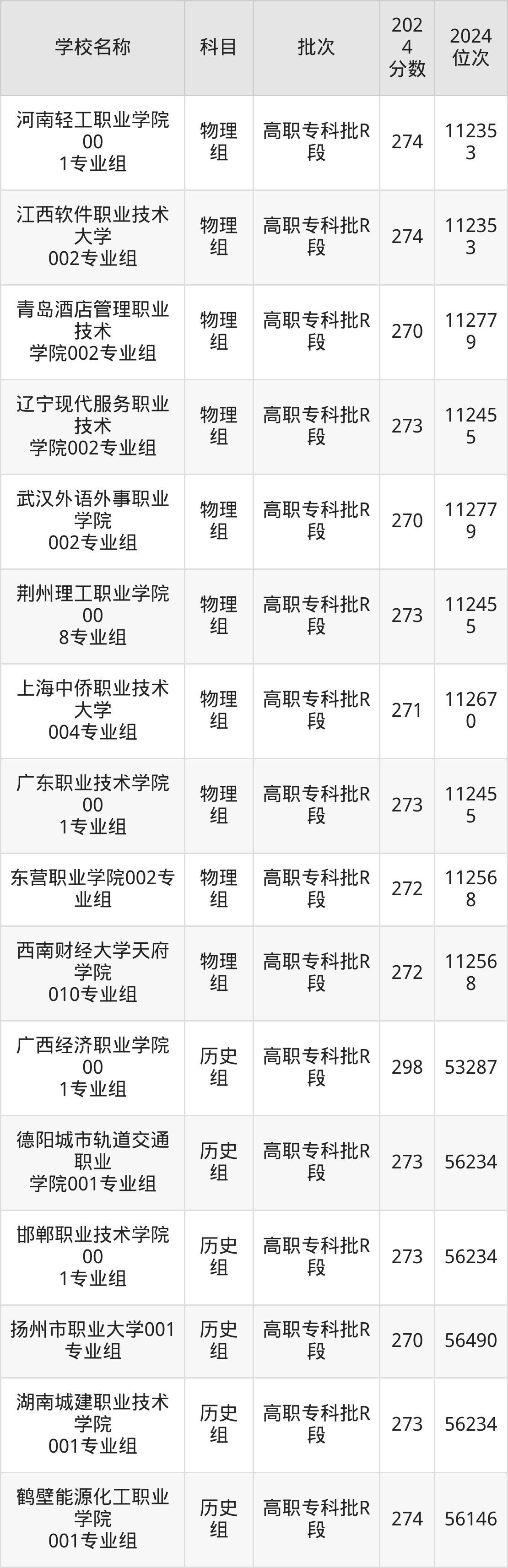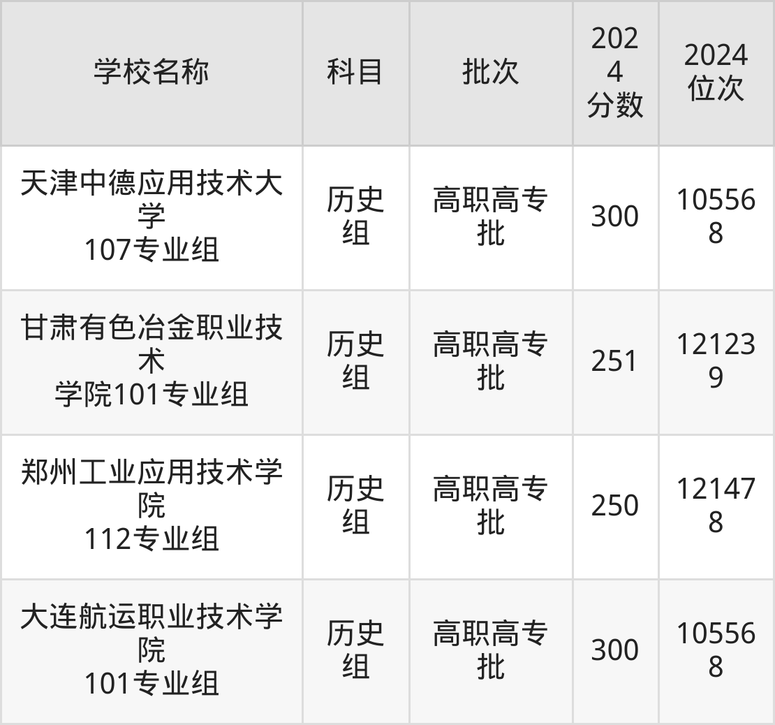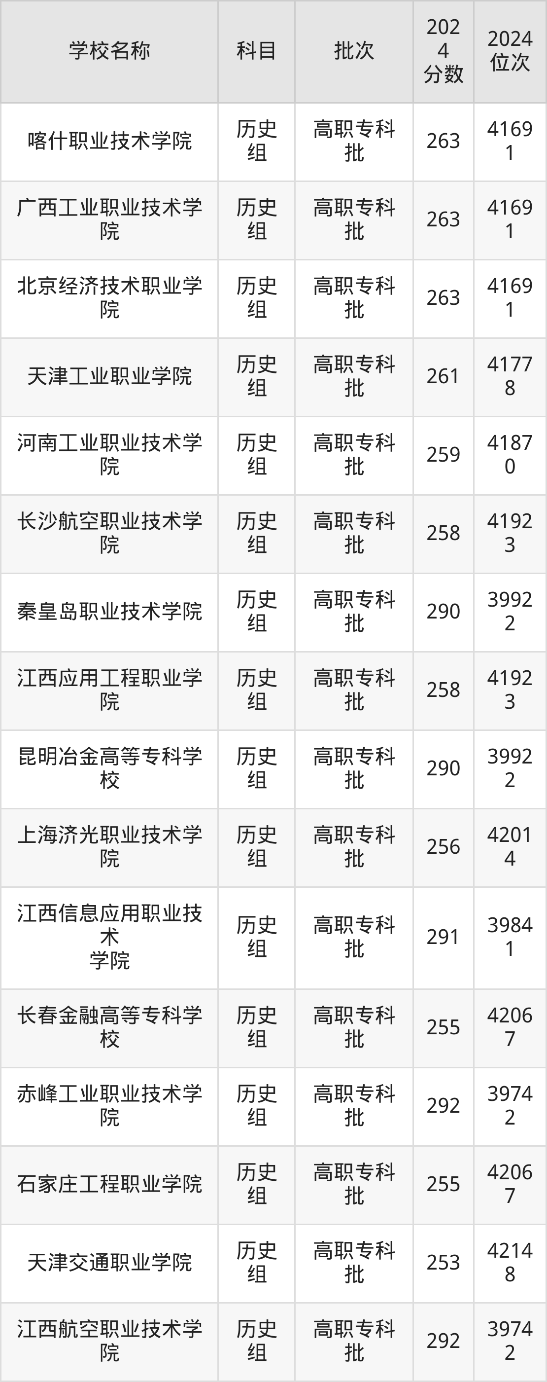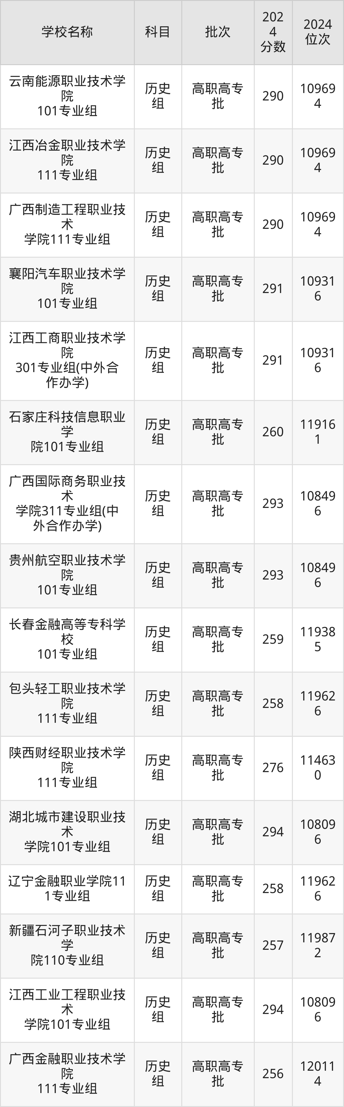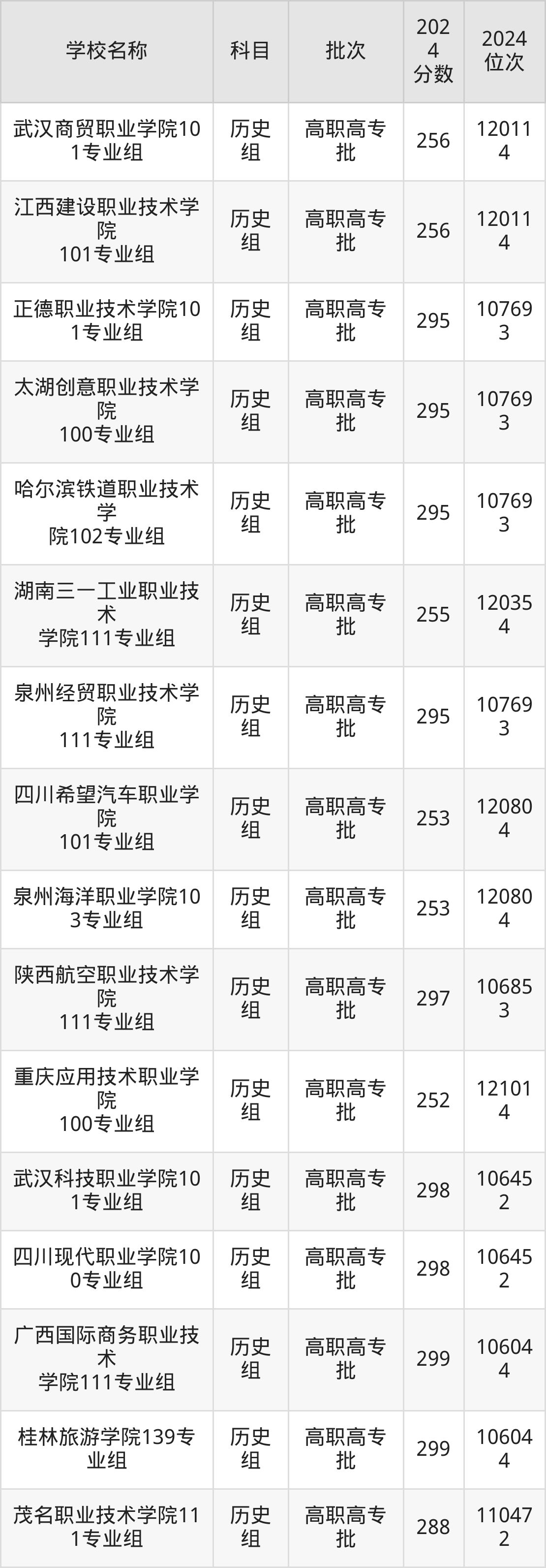 广西高考历史组共有83所理科大学在250到300分之间录取,包含大连航运职业技术学院、天津中德应用技术大学、陕西交通职业技术学院、桂林旅游学院、广西国际商务职业技术学院、四川现代职业学院、武汉科技职业学院、陕西航空职业技术学院、泉州经贸职业技术学院、哈尔滨铁道职业技术学院。