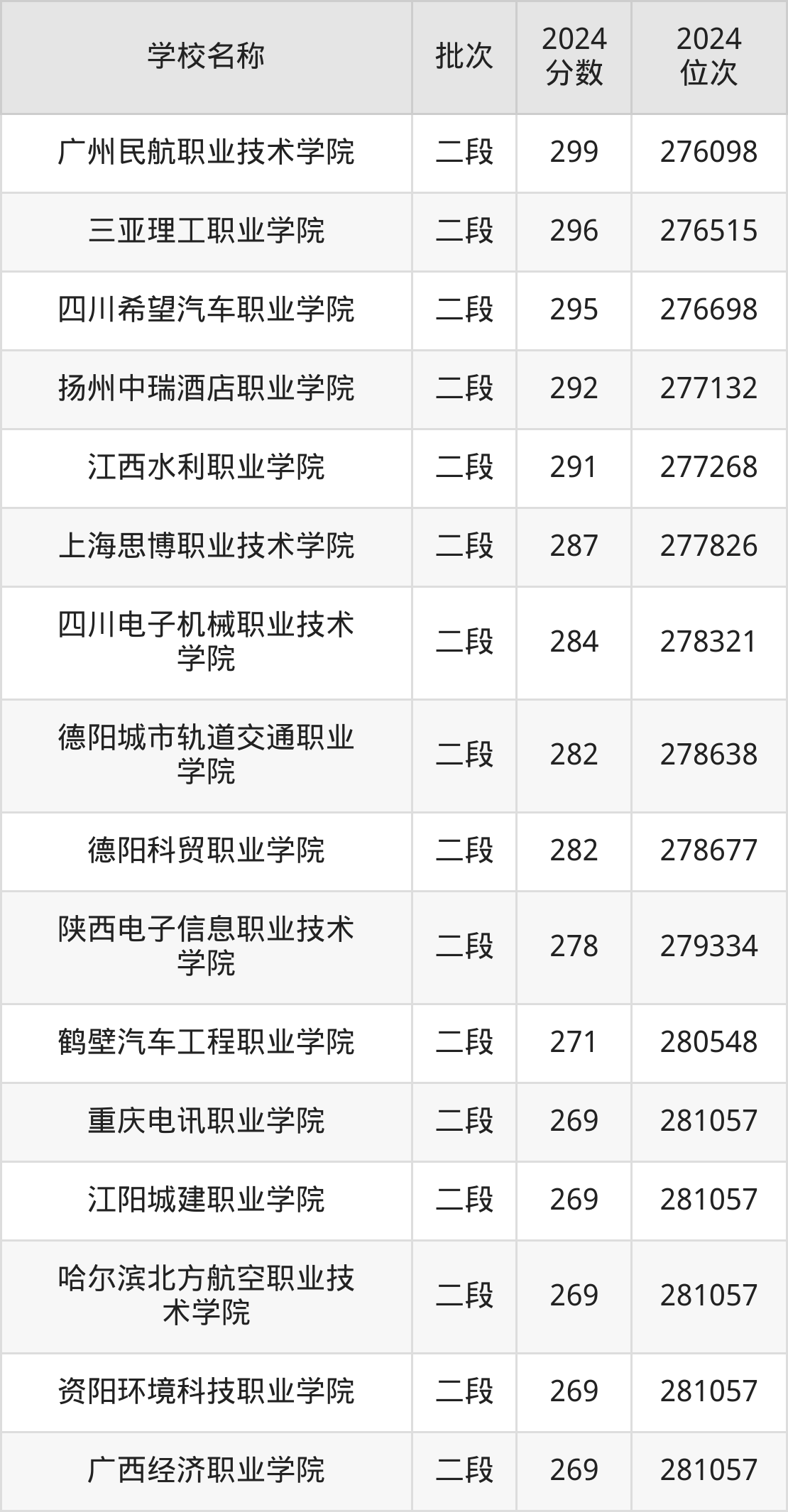 浙江高考共有37所理科大学在250到300分之间录取,包含广州民航职业技术学院、三亚理工职业学院、四川希望汽车职业学院、扬州中瑞酒店职业学院、江西水利职业学院、上海思博职业技术学院、四川电子机械职业技术学院、德阳城市轨道交通职业学院、德阳科贸职业学院、陕西电子信息职业技术学院。