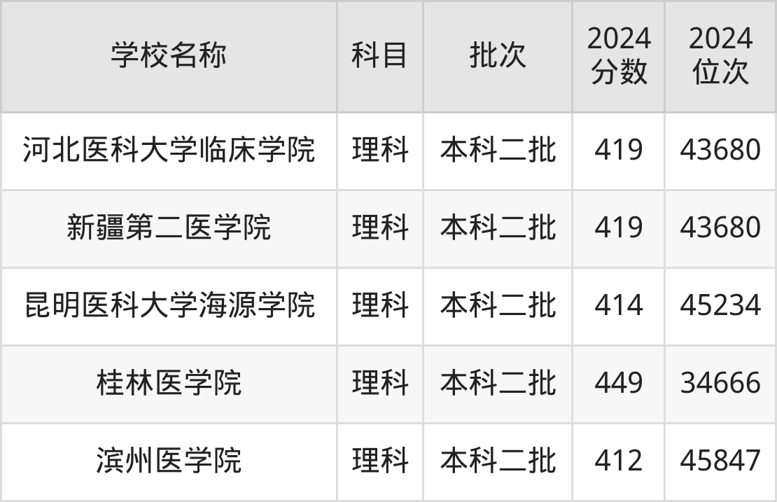 全国各省410到450分能够上的二本医学院是不同的。小编以国内部分高考省份为例,为大家带来410到450分的二本医学院最低录取分数线汇总,供2025届想报考二本医学院的考生同学们查看。