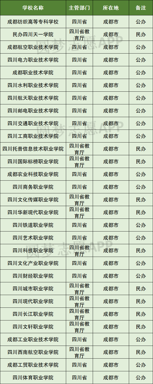 二、成都专科学校全部名单