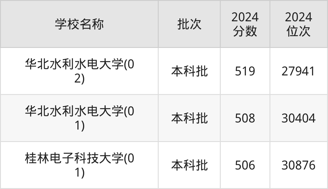 北京高考共有2所电力大学在500到540分之间录取,包含华北水利水电大学、桂林电子科技大学。