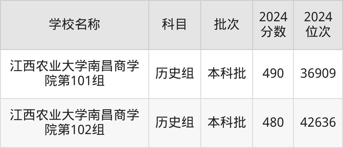 江西高考历史组共有1所农业大学在470到490分之间录取,包含江西农业大学南昌商学院。