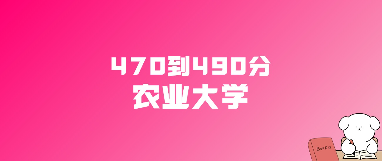470到490分的农业大学有江西农业大学南昌商学院、黑龙江八一农垦大学、内蒙古农业大学、云南农业大学、新疆农业大学、吉林农业科技学院、湖南农业大学东方科技学院、西藏农牧学院、福建农林大学金山学院、浙江农林大学暨阳学院等。
