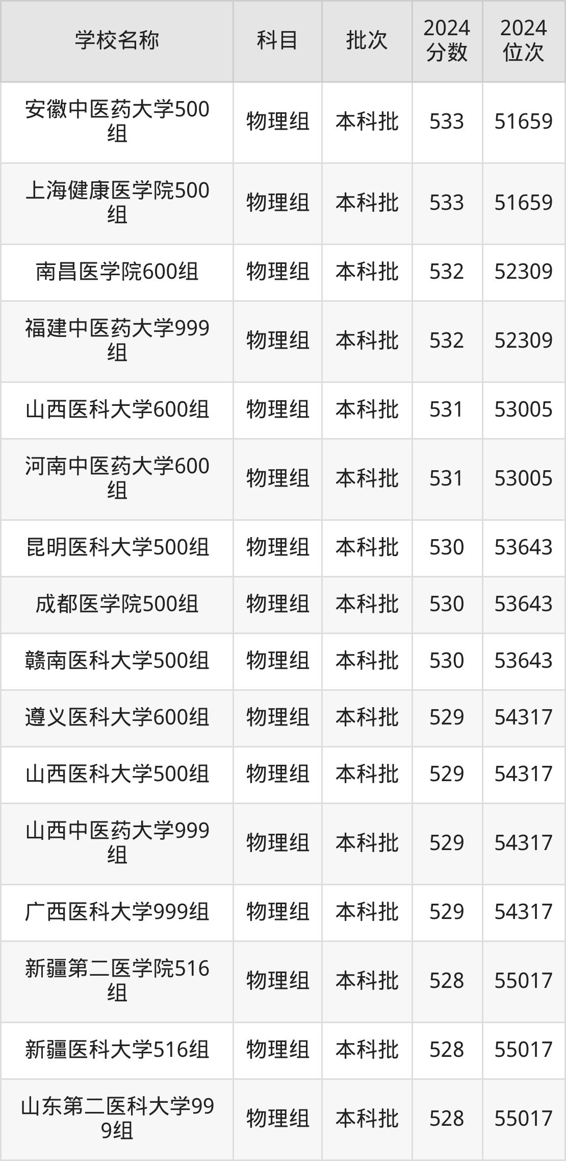 山西高考理科共有10所医科大学在520到540分之间录取,包含海南医科大学、湖南中医药大学、山西医科大学(汾阳学院)、新乡医学院、中国医科大学(中外合作)、陕西中医药大学、上海中医药大学、江西中医药大学、山西中医药大学、长治医学院。