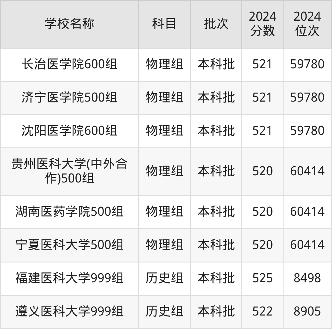 福建高考历史组共有2所医科大学在520到540分之间录取,包含福建医科大学、遵义医科大学。