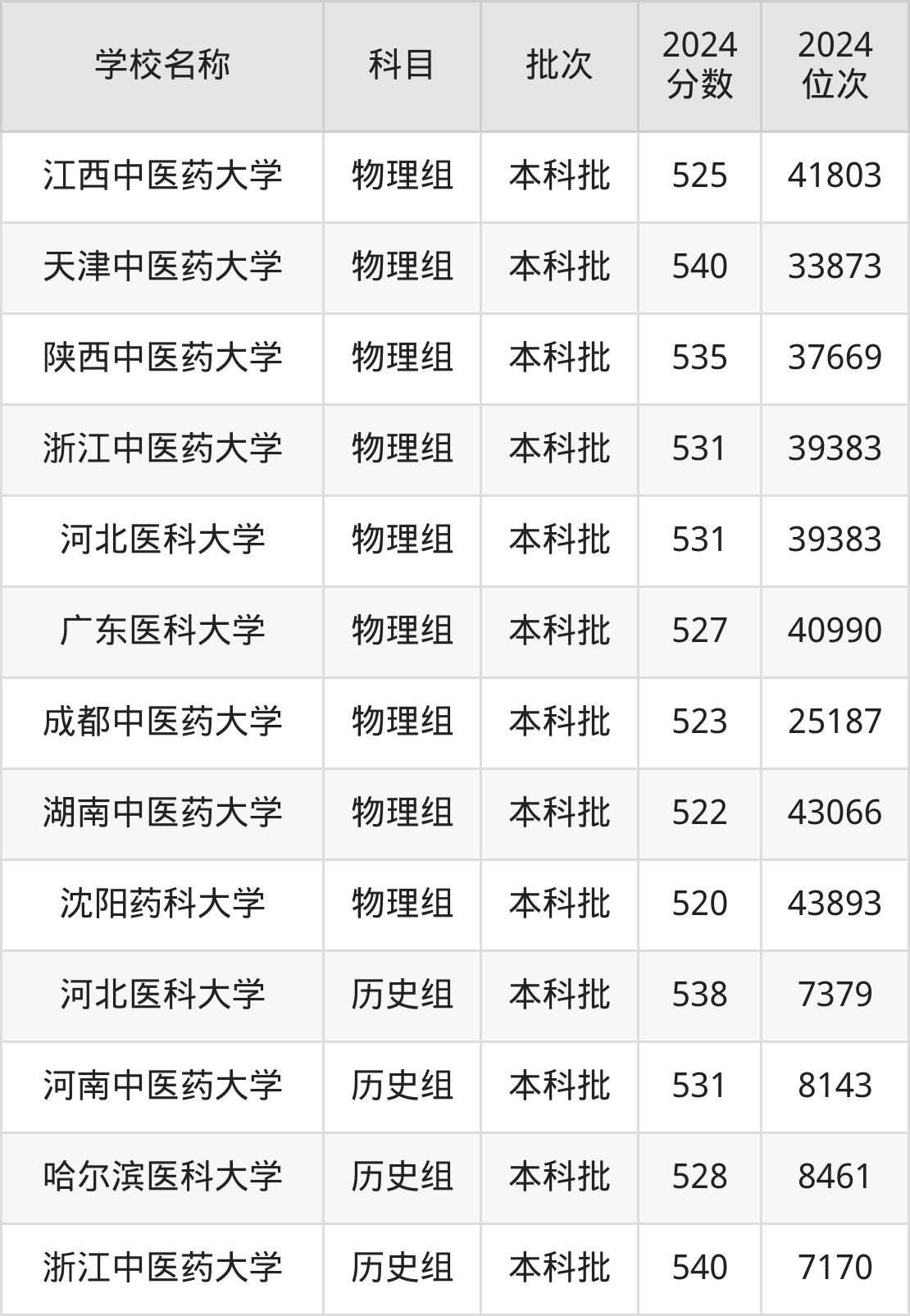 辽宁高考历史组共有4所医科大学在520到540分之间录取,包含浙江中医药大学、河北医科大学、河南中医药大学、哈尔滨医科大学。