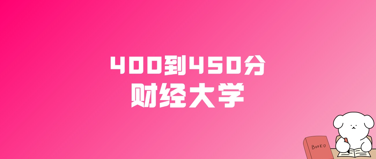 400到450分的财经大学有天津商业大学宝德学院、仰恩大学、郑州财经学院、辽宁财贸学院、郑州商学院、山东工商学院、西南财经大学天府学院、哈尔滨金融学院(少数民族预科)、山西工商学院、广州商学院等。