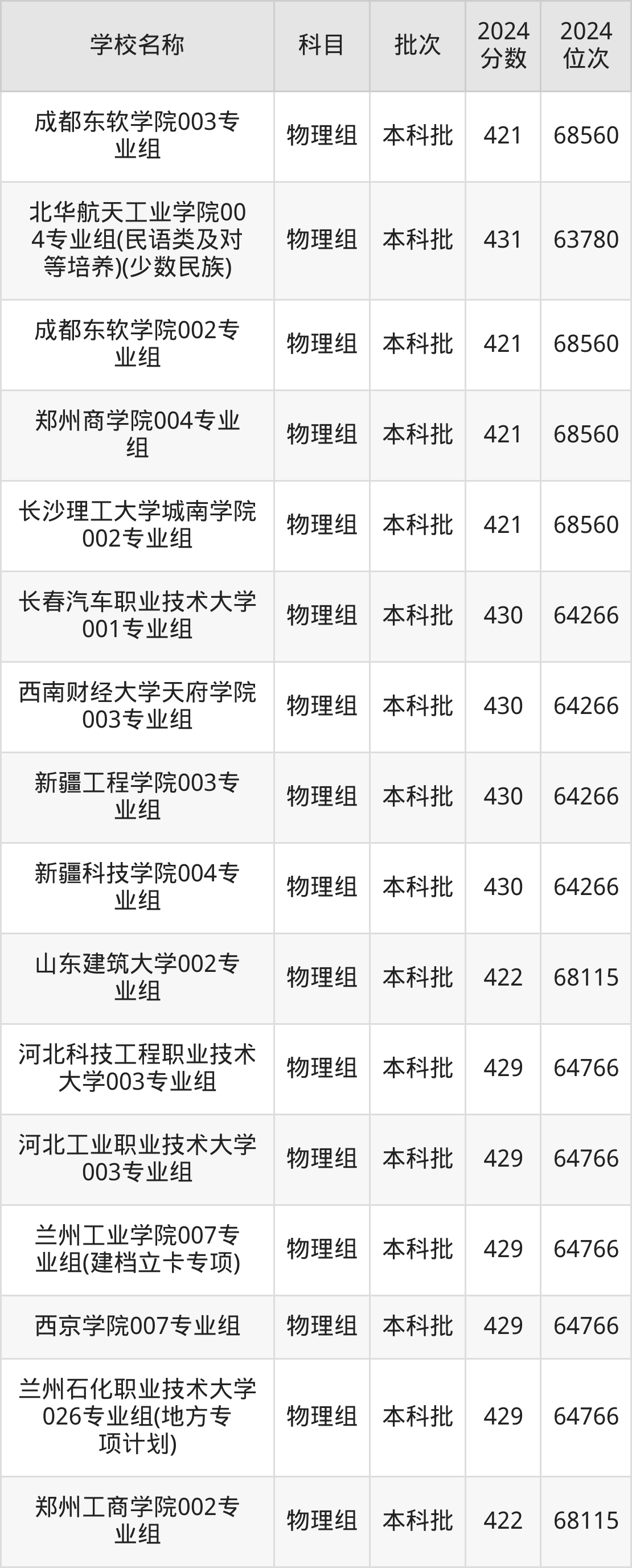 福建高考物理组共有8所理科大学在410到450分之间录取,包含辽宁对外经贸学院、厦门工学院、吉林建筑科技学院、黑龙江财经学院、长春建筑学院、大连东软信息学院、福州工商学院、福州理工学院。