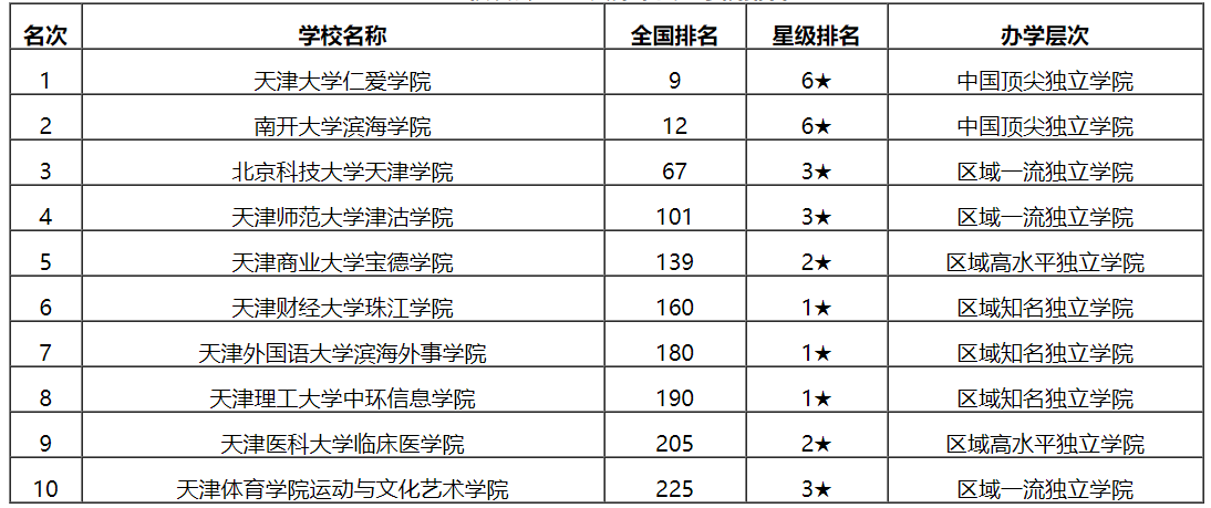 该校于2006年正式创立,2010年学校被评为全国先进独立学院;2017年,被天津市学位委员会批准为2017-2020年天津市硕士学位授予单位立项建设高校。根据2020年校友会天津市独立学院排名来看,天津大学仁爱学院是天津最好的独立学院。以下为具体排名: