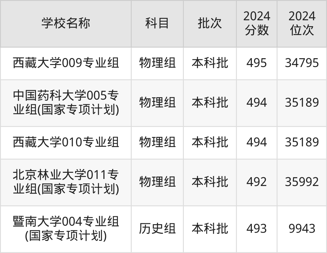 甘肃高考物理组共有3所211大学在490到500分之间录取,包含西藏大学、中国药科大学、北京林业大学。