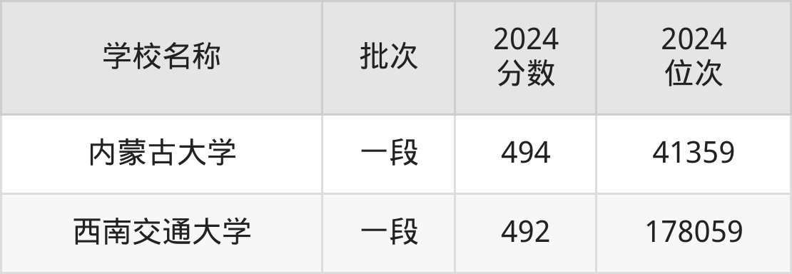 浙江高考共有2所211大学在490到500分之间录取,包含内蒙古大学、西南交通大学。