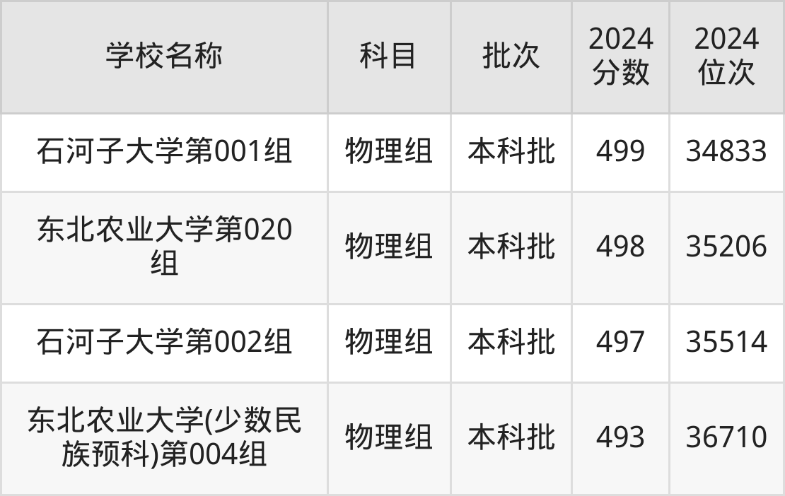 黑龙江高考物理组共有3所211大学在490到500分之间录取,包含石河子大学、东北农业大学、东北农业大学(少数民族预科)。