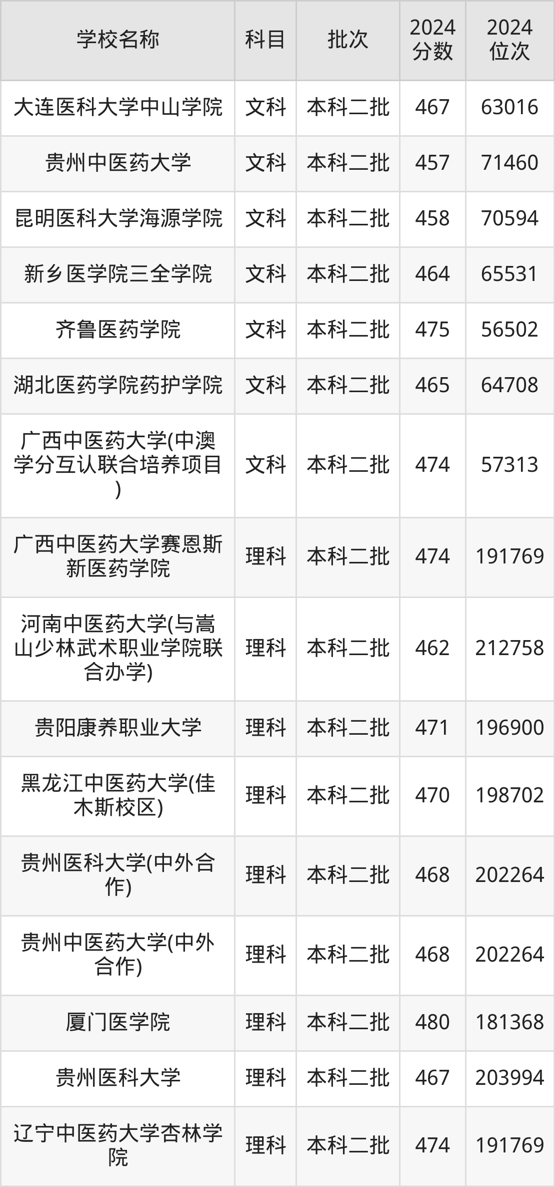 河南高考文科共有7所医科大学在450到480分之间录取,包含齐鲁医药学院、广西中医药大学(中澳学分互认联合培养项目)、大连医科大学中山学院、湖北医药学院药护学院、新乡医学院三全学院、昆明医科大学海源学院、贵州中医药大学。