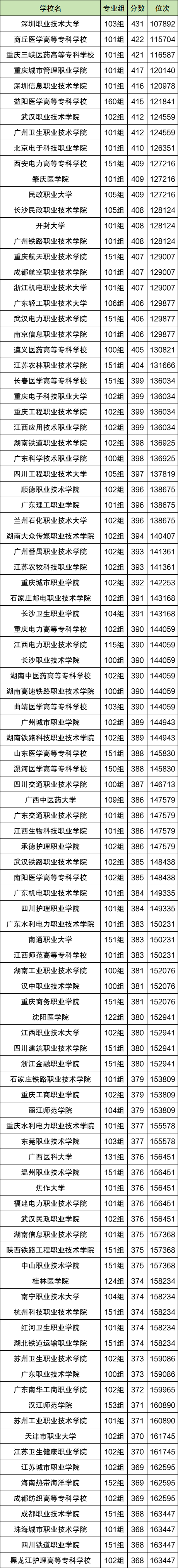 而分数线较高的自治区内公办大专有南宁职业技术大学396分、广西医科大学397分、桂林医学院406分等。