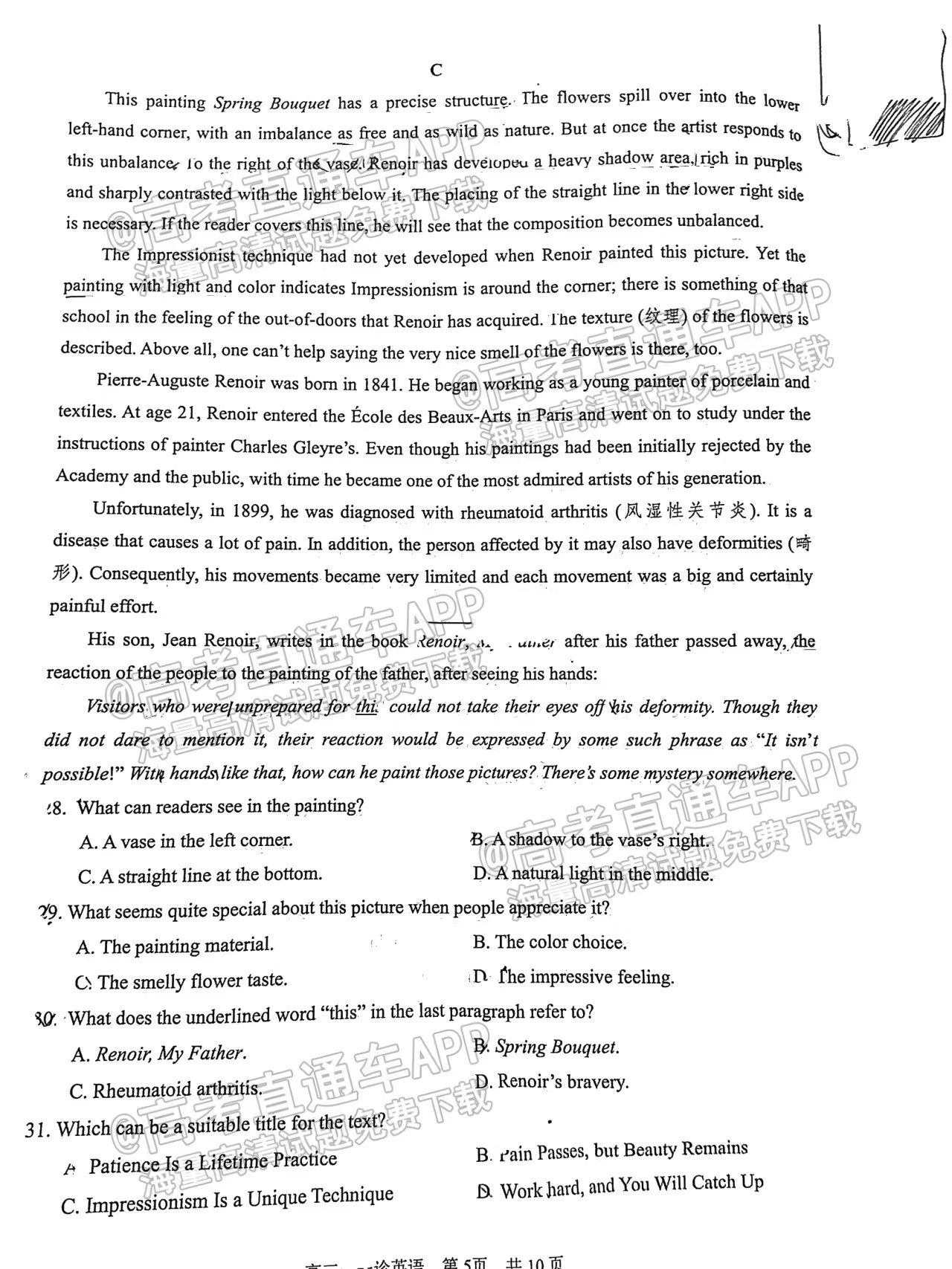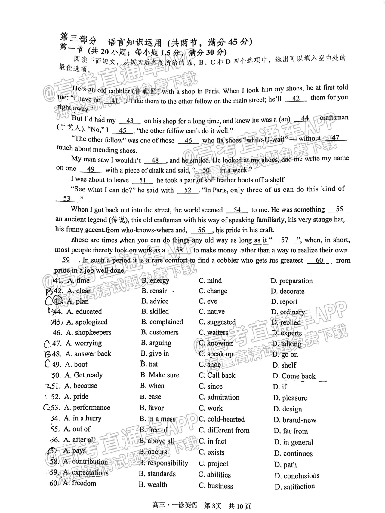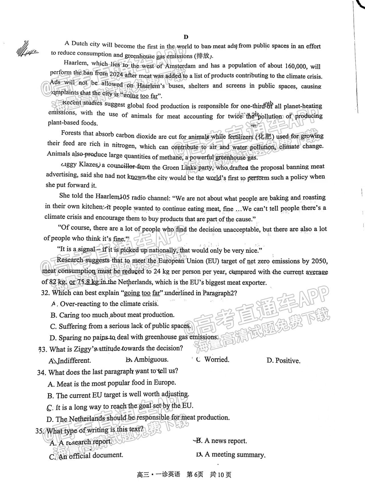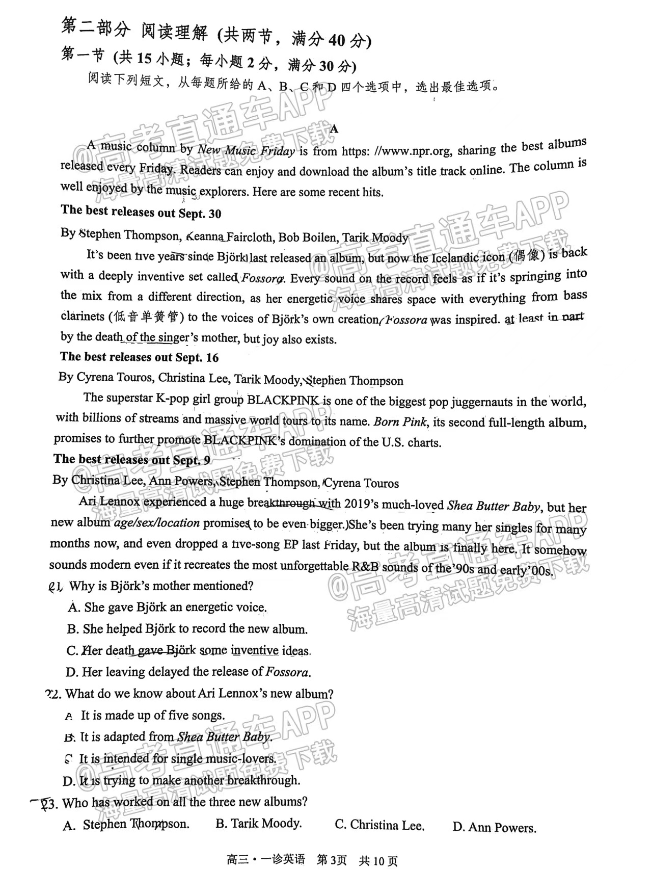 2023泸州一诊考试将于2022年11月22日开考,考试结束后高考100网将更新泸州一诊考试英语答案及试卷,下文为高考100网小编搜集整理的2023泸州第一次诊断性考试英语试题及参考答案,供大家参考。