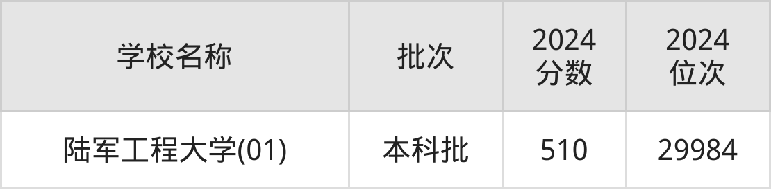 北京高考共有1所军校在500到600分之间录取,包含陆军工程大学。