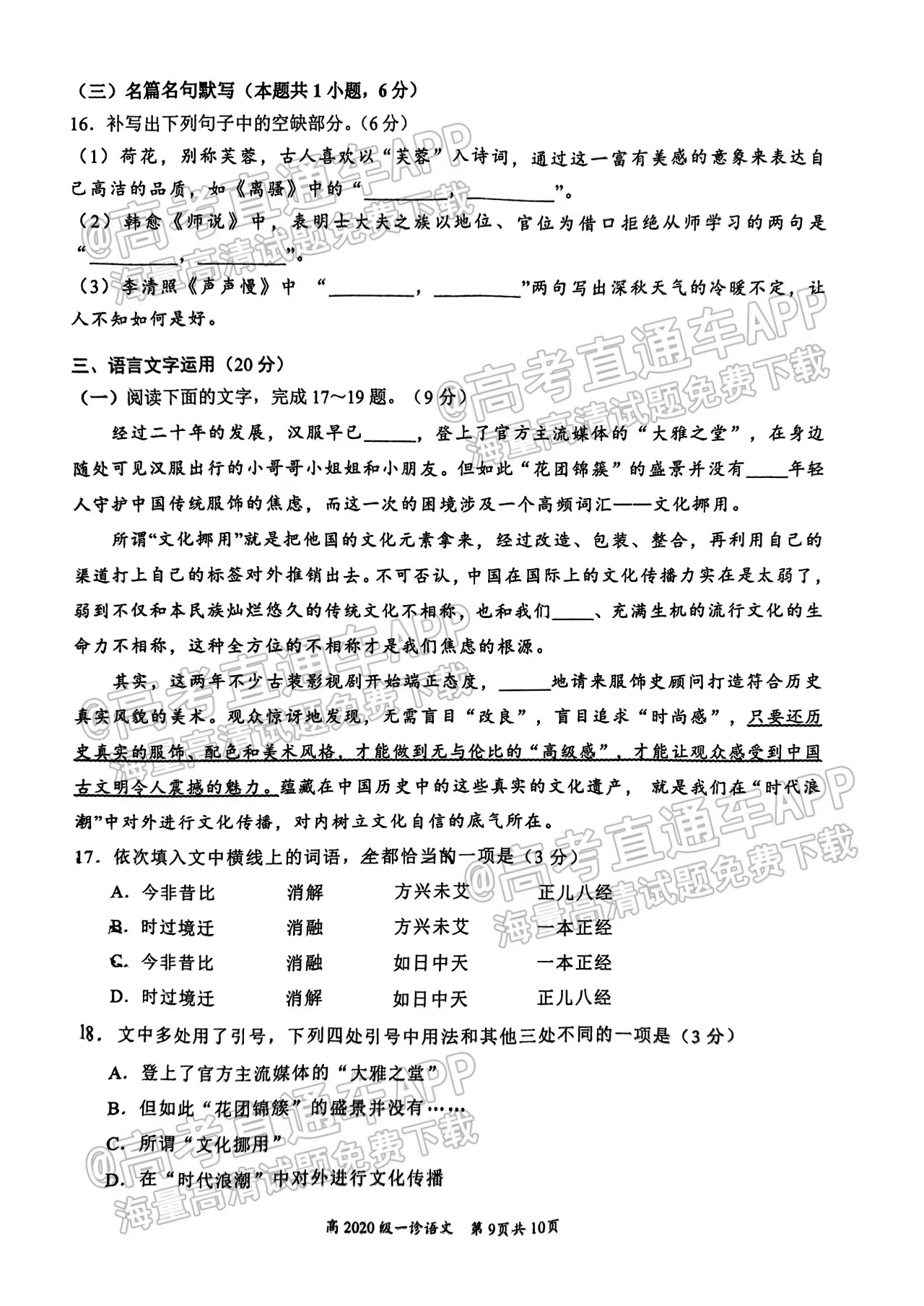 二、2023宜宾一诊考试语文答案解析