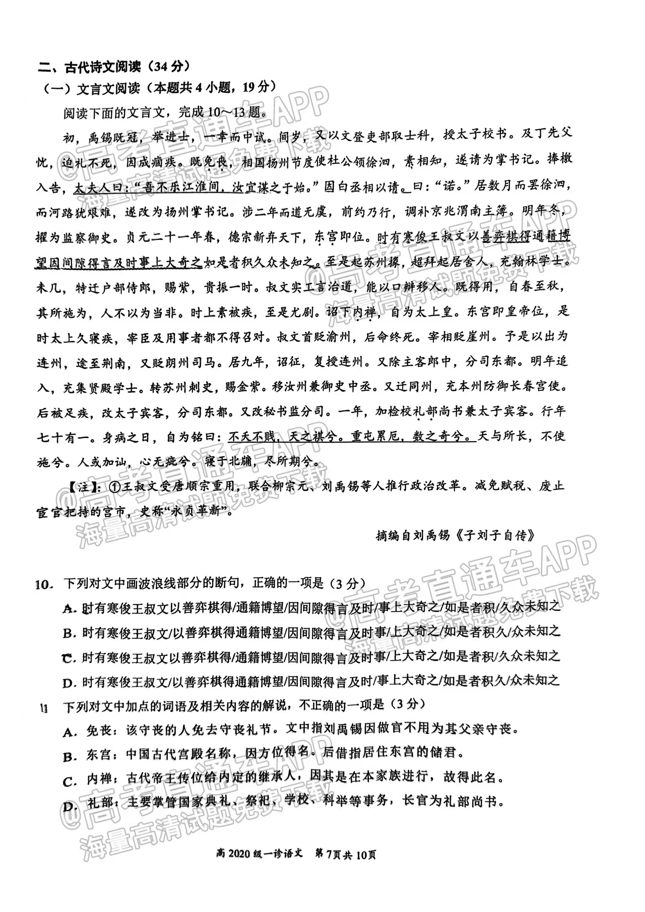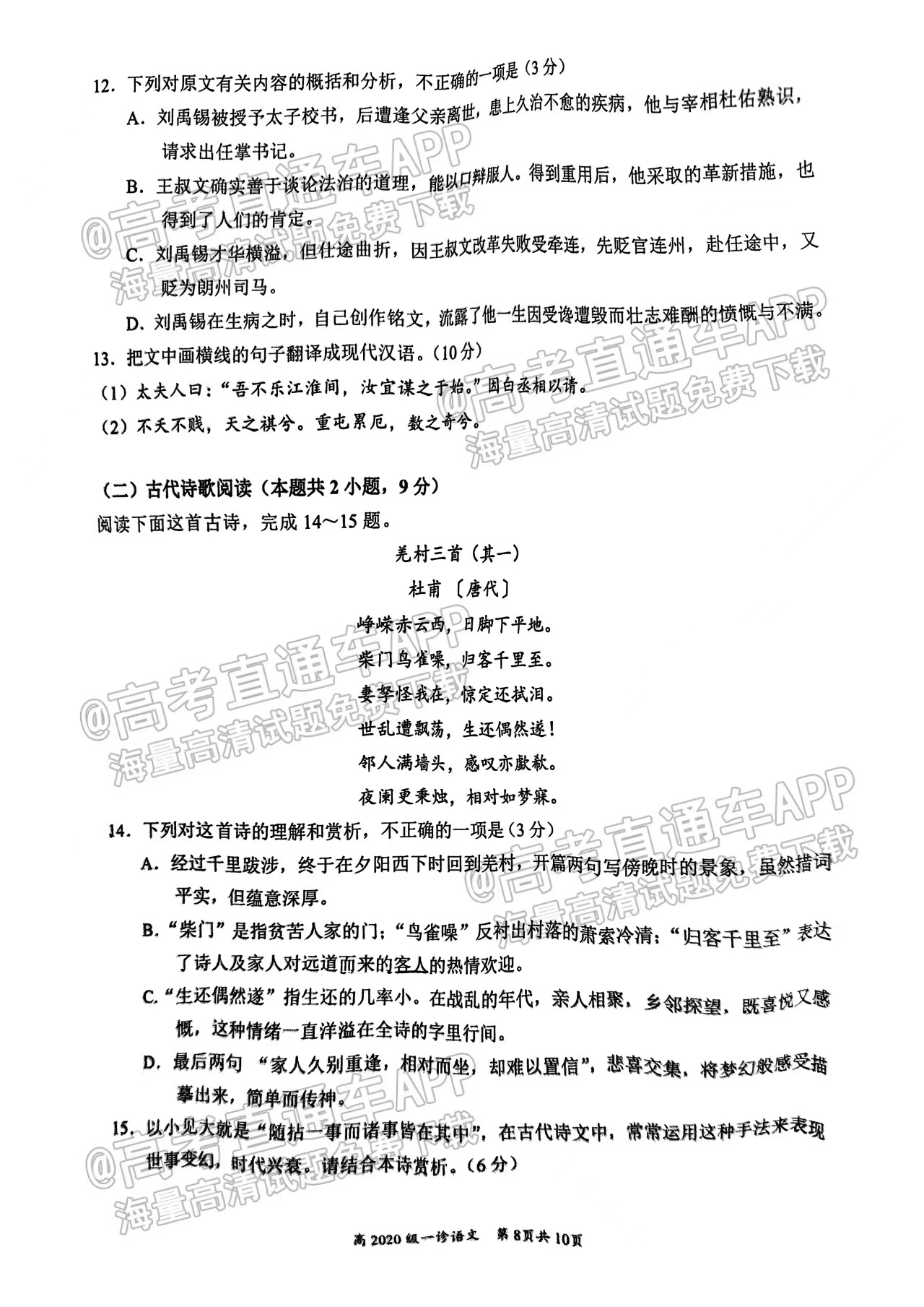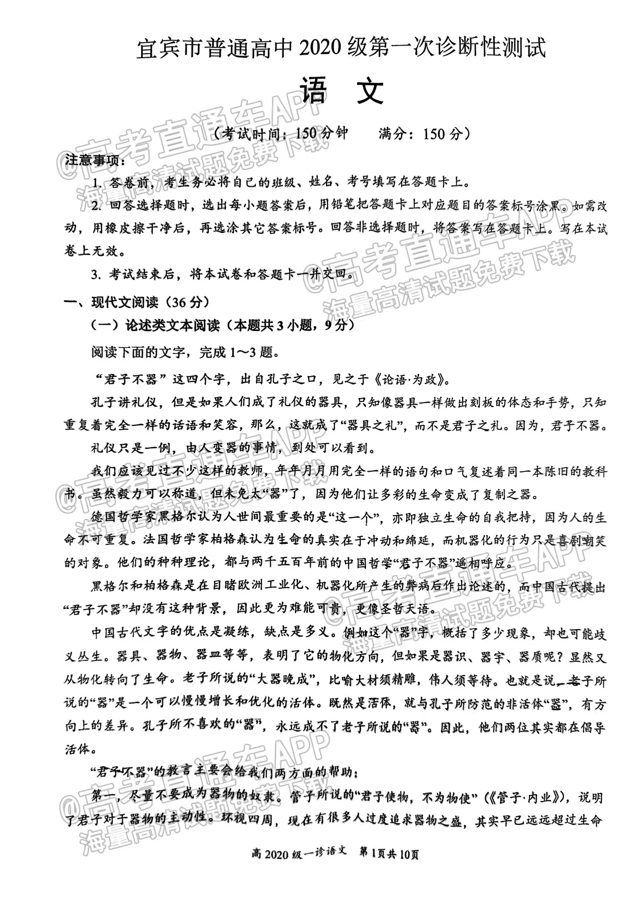 一、2023宜宾一诊考试语文试卷