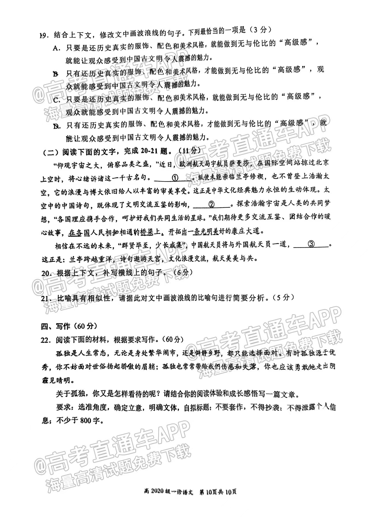 2023宜宾一诊考试将于2022年11月22日开考,考试结束后高考100网将更新2023宜宾一诊考试语文答案及试卷,下文为高考100网小编搜集整理的2023宜宾第一次诊断性考试语文试题及参考答案,供大家参考。