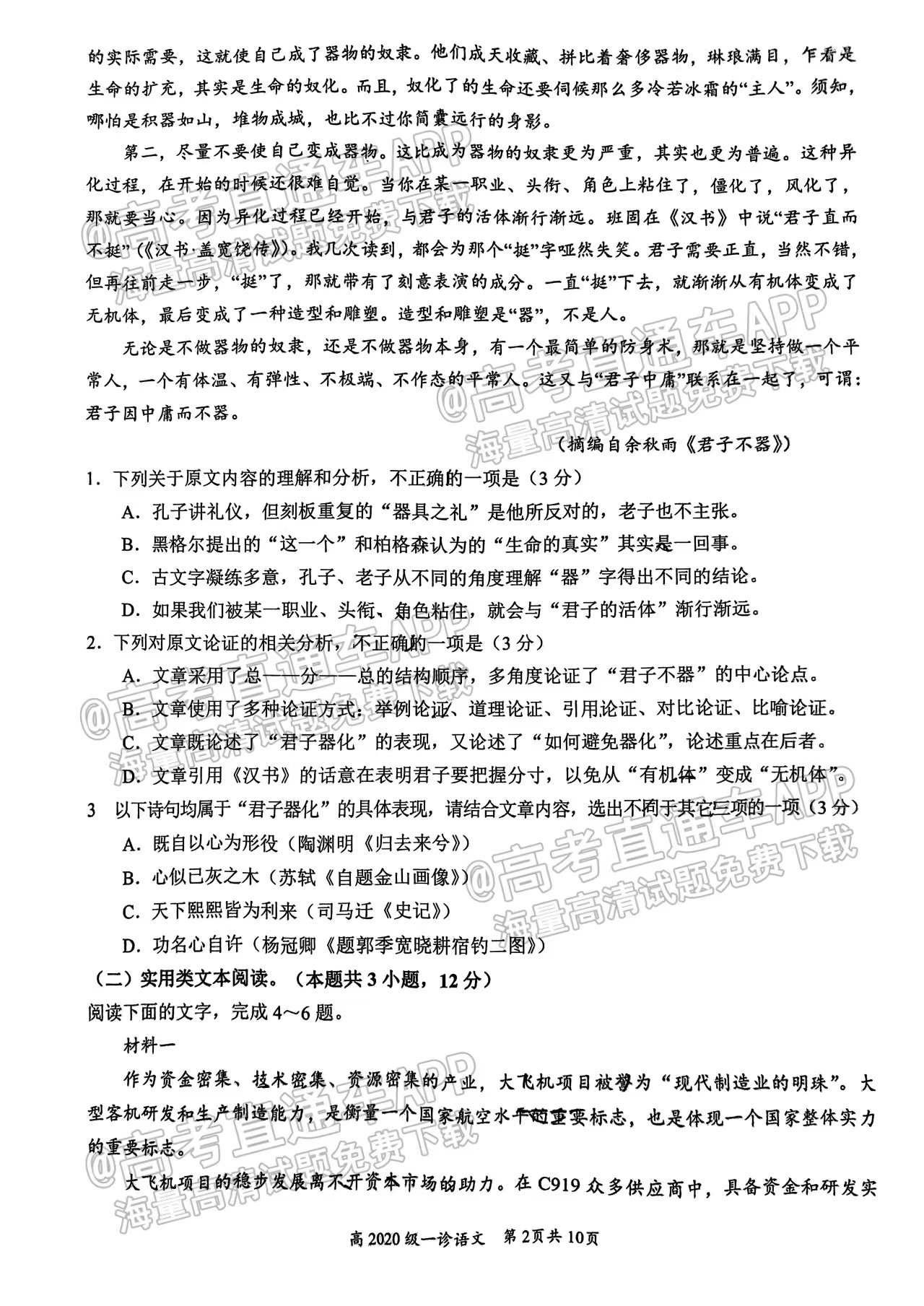 本次考试其他各科试题及参考答案汇总:2023宜宾一诊各科试题及参考答案汇总(点击查看)