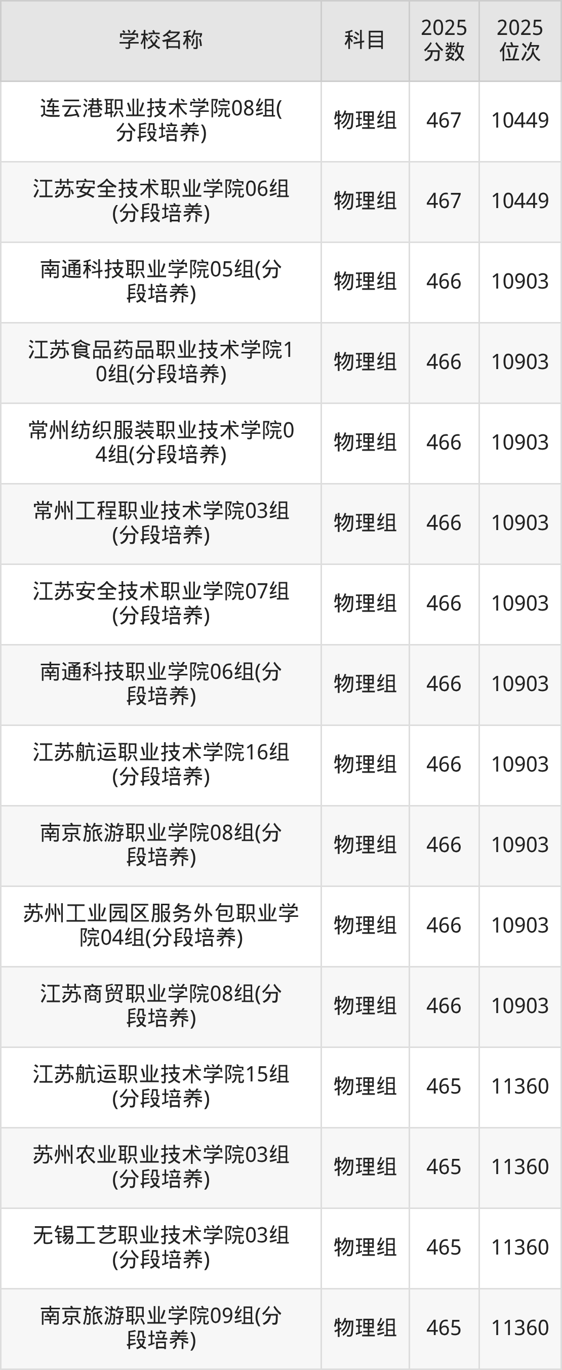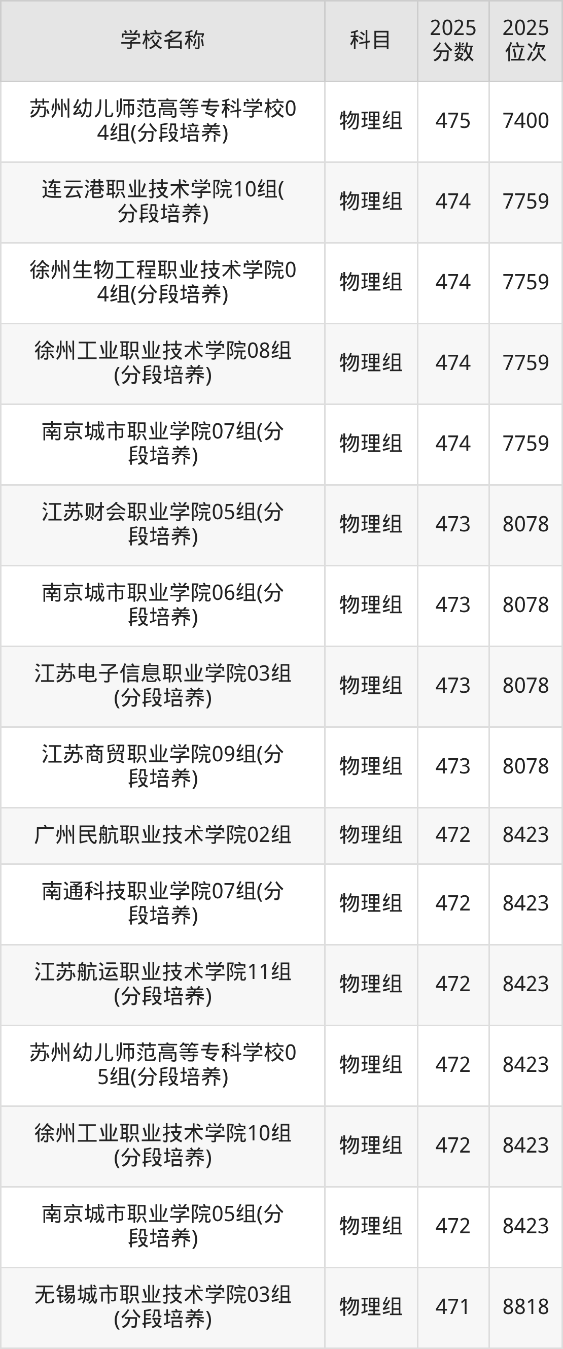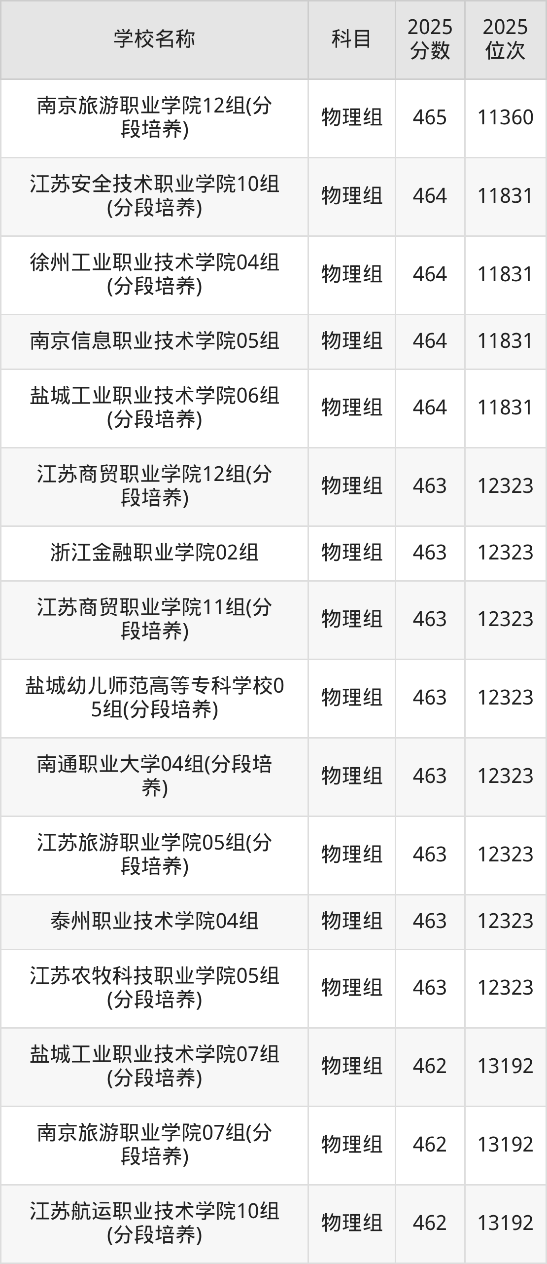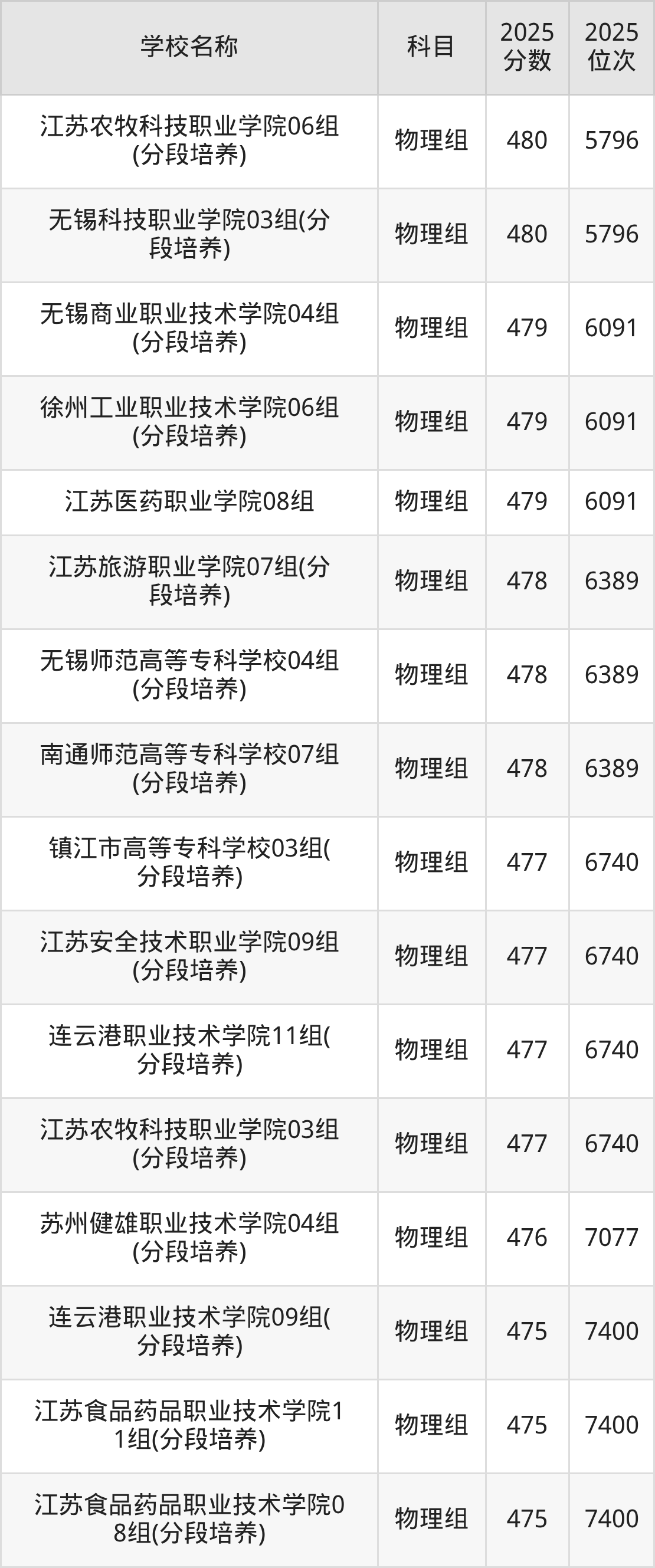 江苏高考物理组共有46所公办专科学校在460到480分之间录取,包含无锡科技职业学院、江苏农牧科技职业学院、无锡商业职业技术学院、徐州工业职业技术学院、江苏医药职业学院、无锡师范高等专科学校、南通师范高等专科学校、江苏旅游职业学院、江苏安全技术职业学院、连云港职业技术学院。