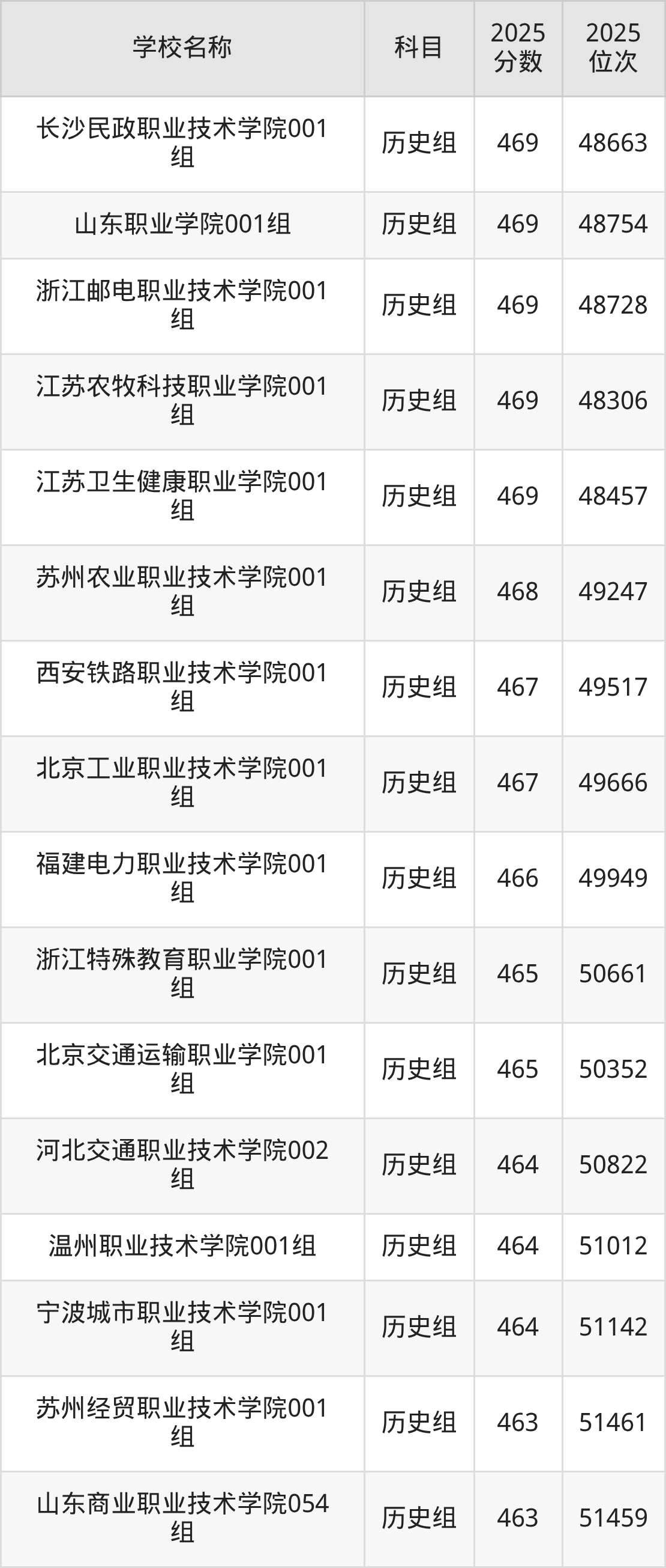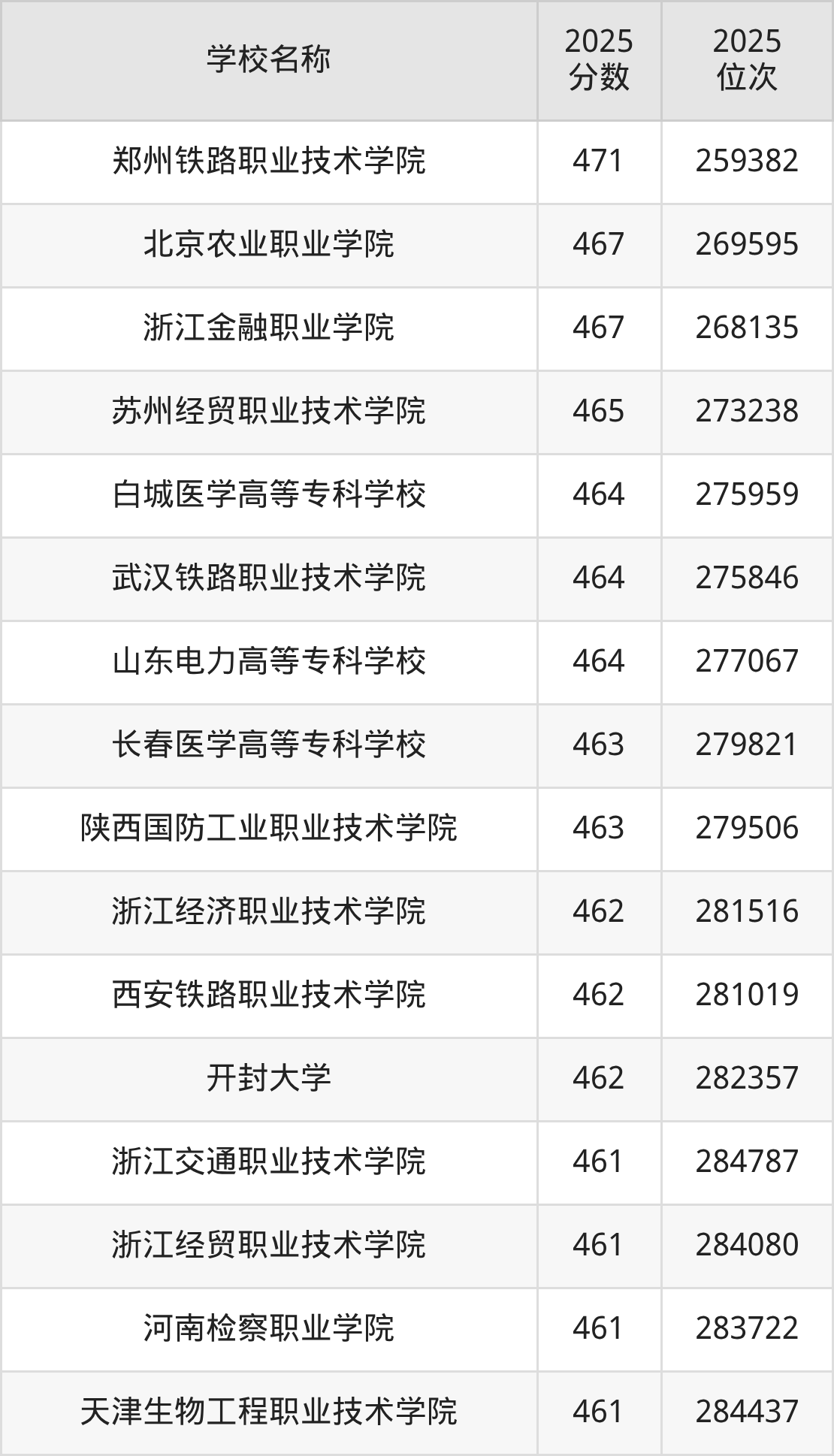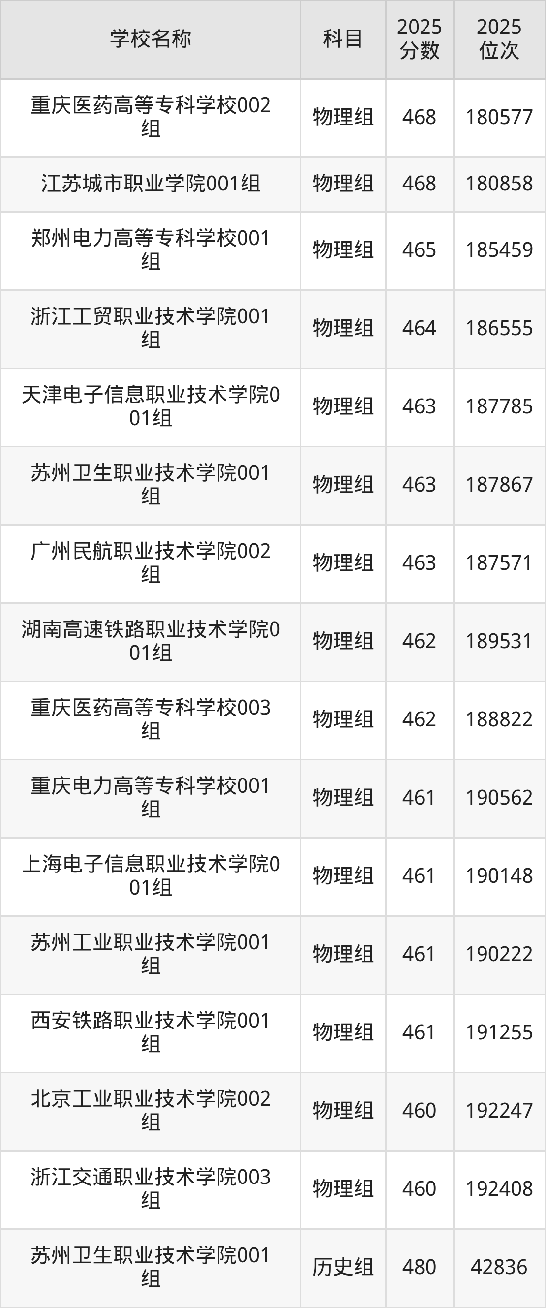 一、460到480分的公办专科学校最低分一览表