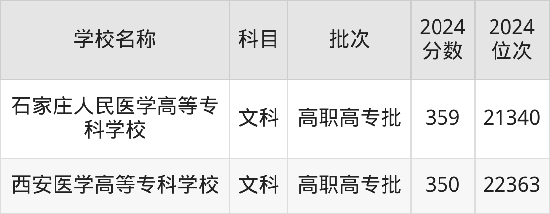 内蒙古高考文科共有2所民办专科学校在350到400分之间录取,包含石家庄人民医学高等专科学校、西安医学高等专科学校。