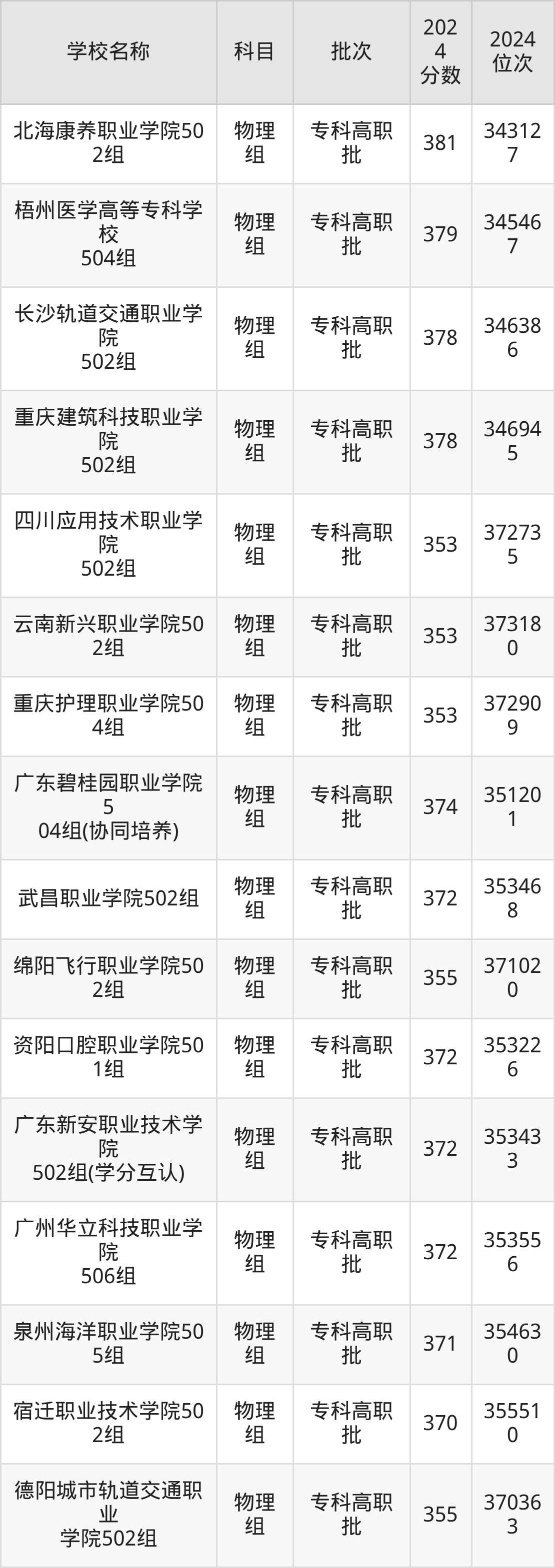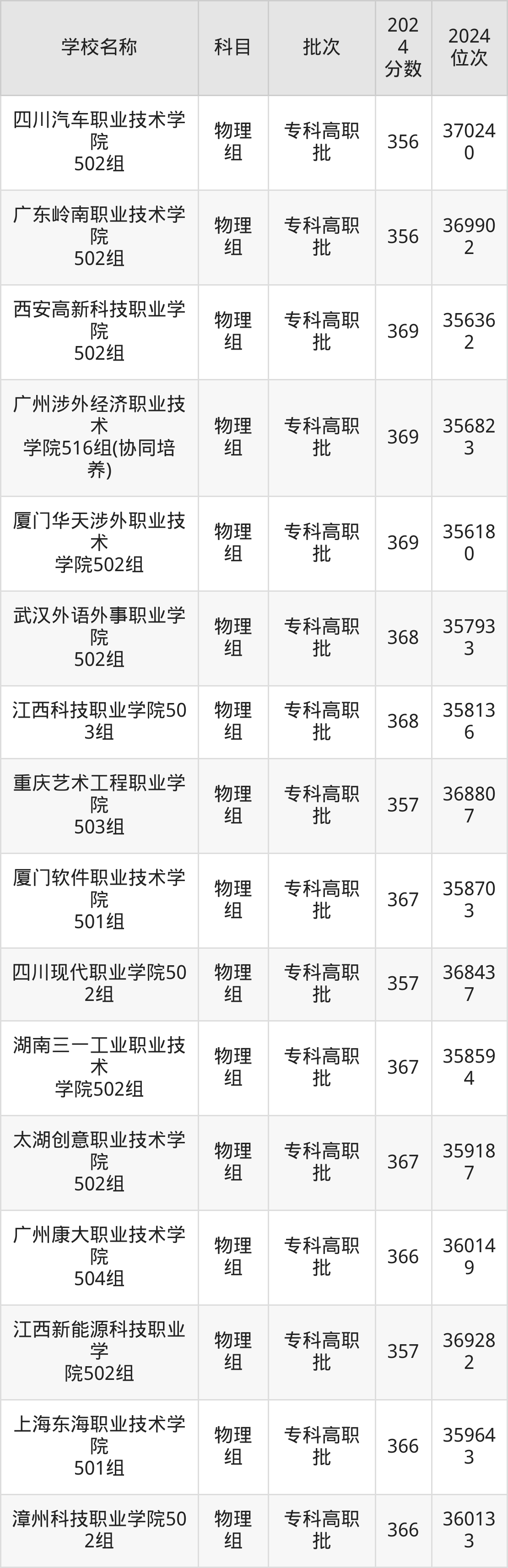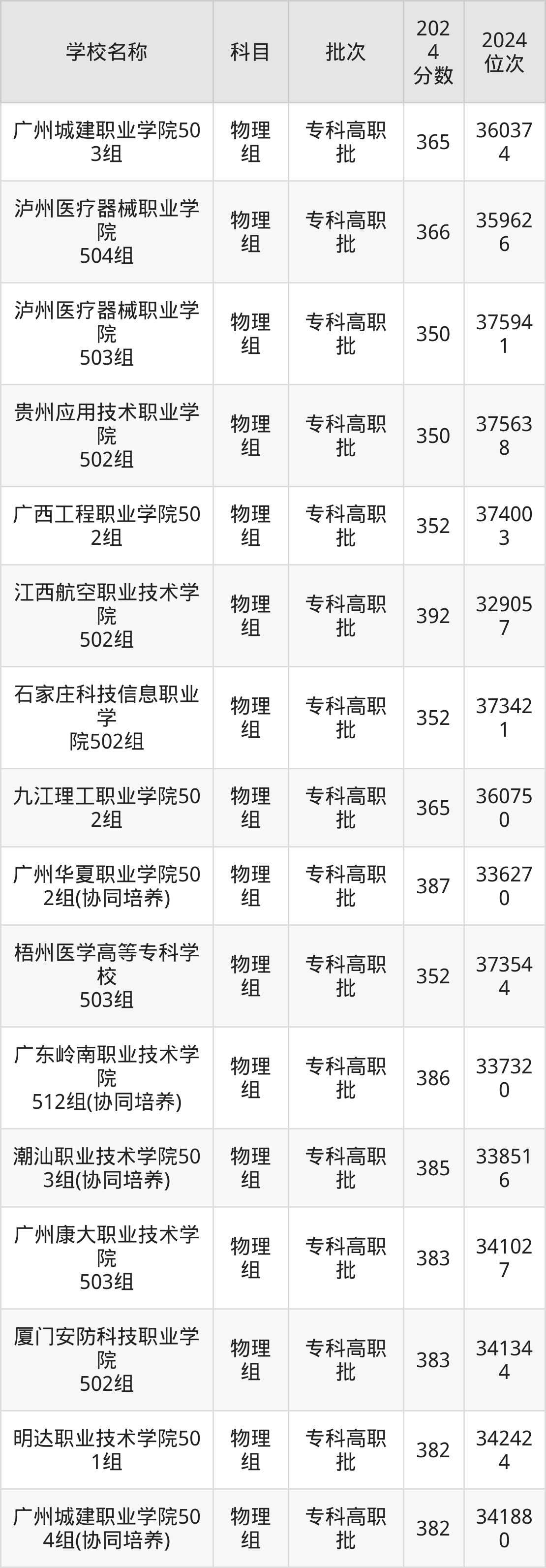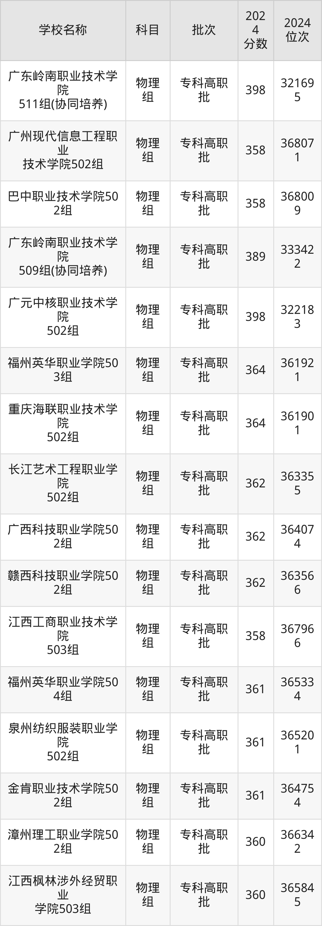 广东高考物理组共有62所民办专科学校在350到400分之间录取,包含广东岭南职业技术学院、广元中核职业技术学院、江西航空职业技术学院、广州华夏职业学院、潮汕职业技术学院、广州康大职业技术学院、厦门安防科技职业学院、明达职业技术学院、广州城建职业学院、北海康养职业学院。