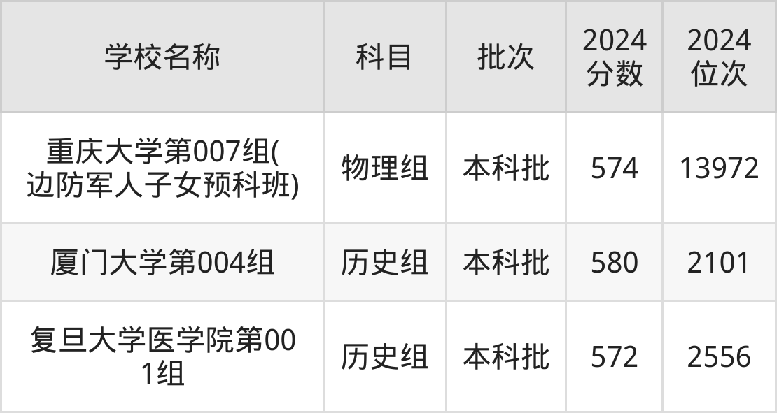 黑龙江高考历史组共有2所985大学在570到580分之间录取,包含厦门大学、复旦大学上海医学院。