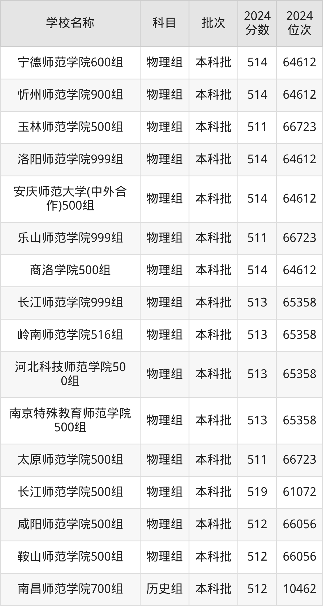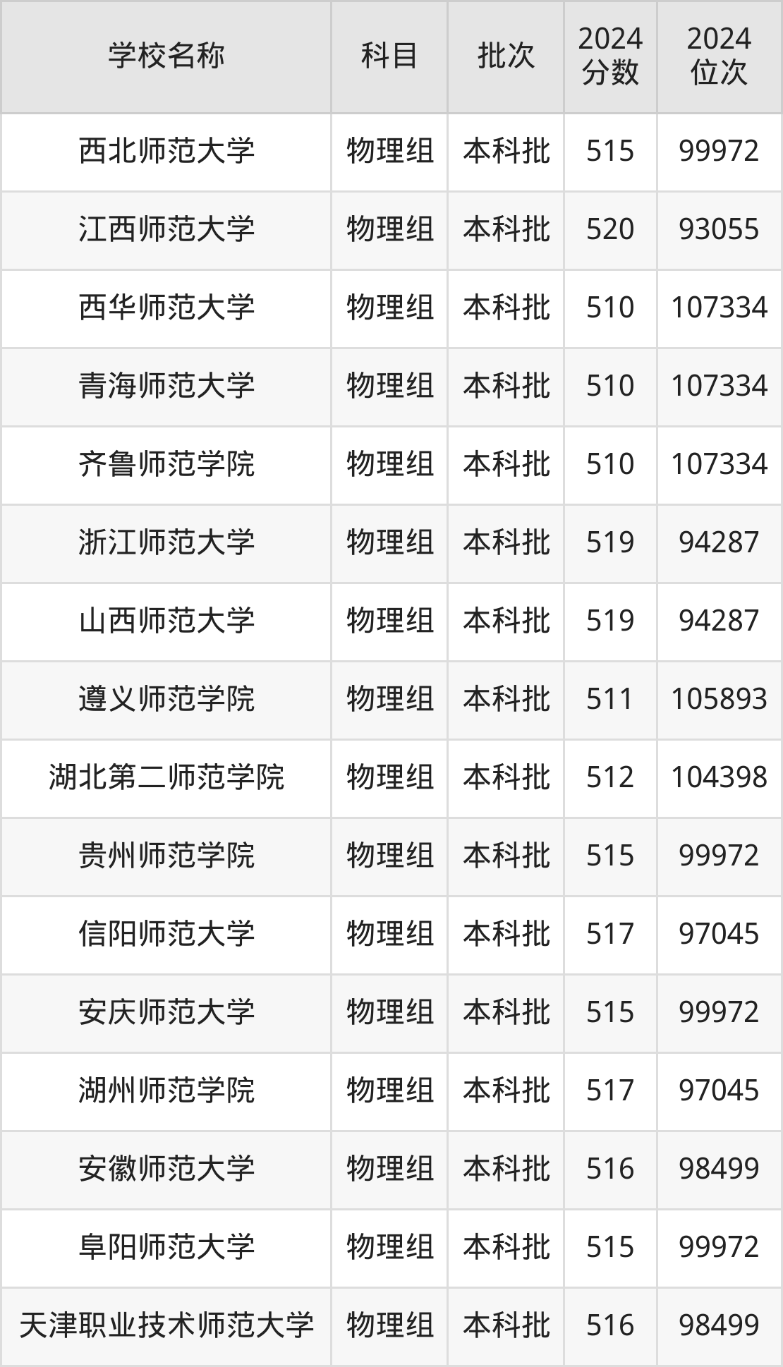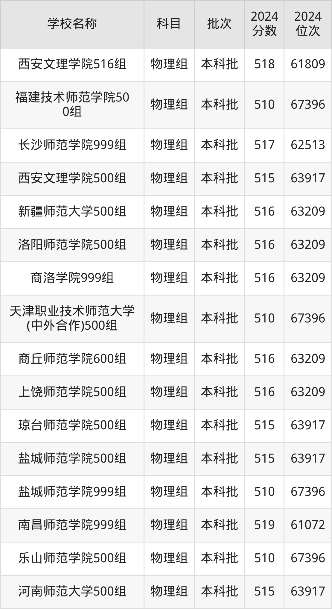 黑龙江高考物理组共有6所师范大学在510到520分之间录取,包含江西师范大学、哈尔滨师范大学、淮北师范大学、沈阳师范大学、山东师范大学、天津职业技术师范大学。