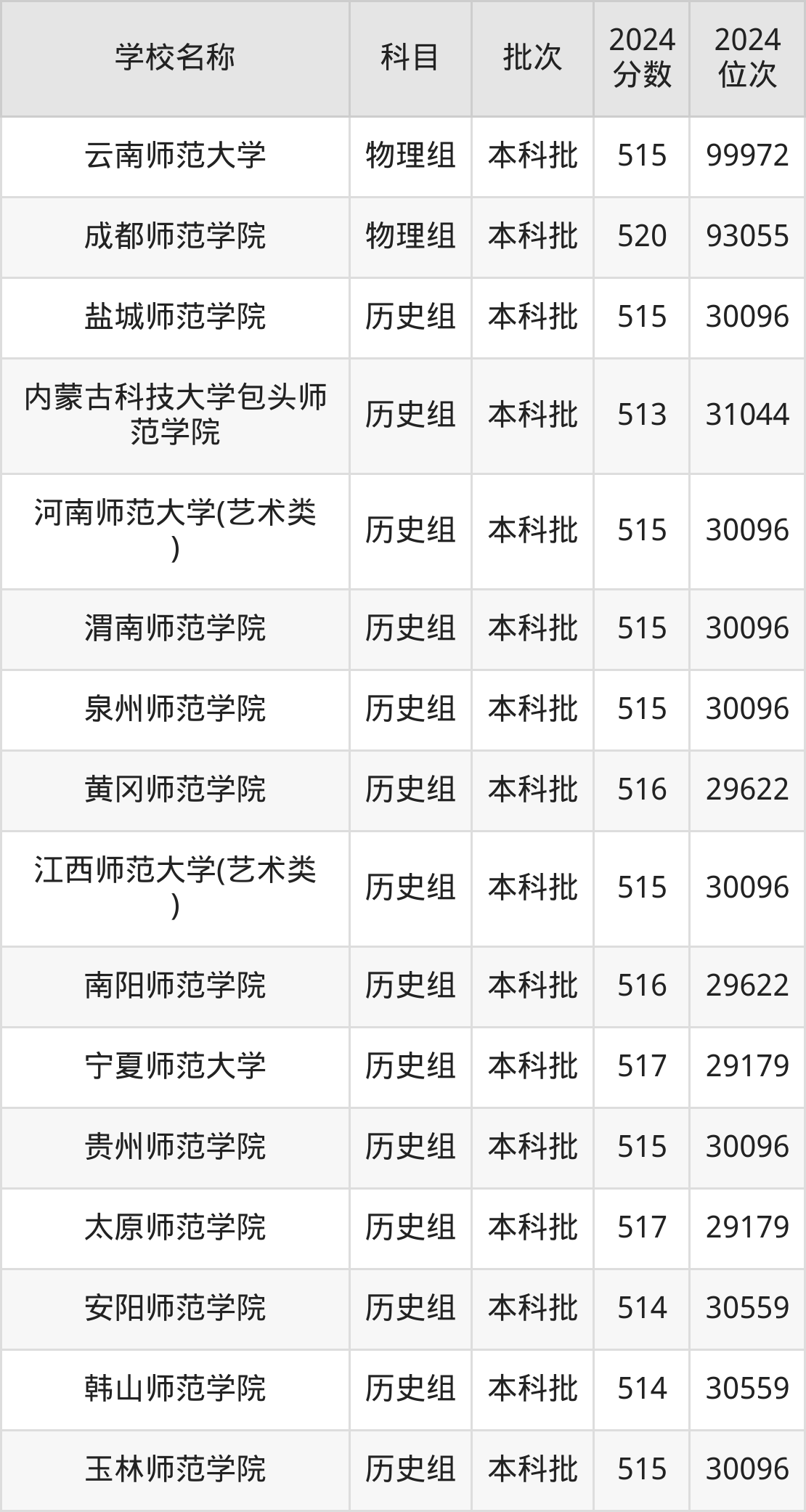 一、510到520分的师范大学最低分一览表
