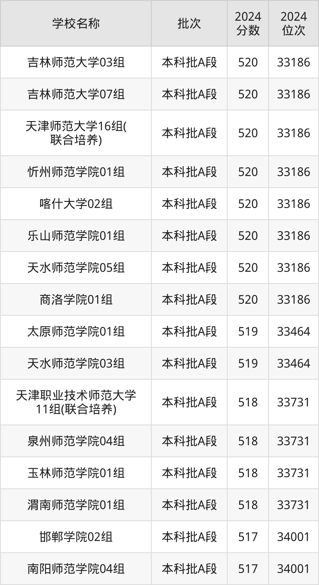 510到520分的师范大学有吉林师范大学、天津师范大学、忻州师范学院、喀什大学、乐山师范学院、天水师范学院、商洛学院、太原师范学院、天津职业技术师范大学、泉州师范学院等。