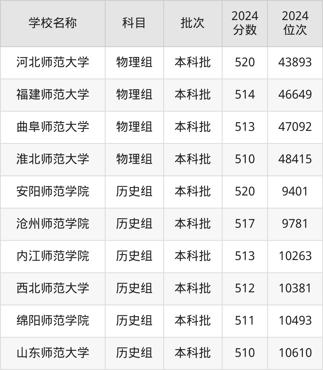 辽宁高考历史组共有6所师范大学在510到520分之间录取,包含安阳师范学院、沧州师范学院、内江师范学院、西北师范大学、绵阳师范学院、山东师范大学。