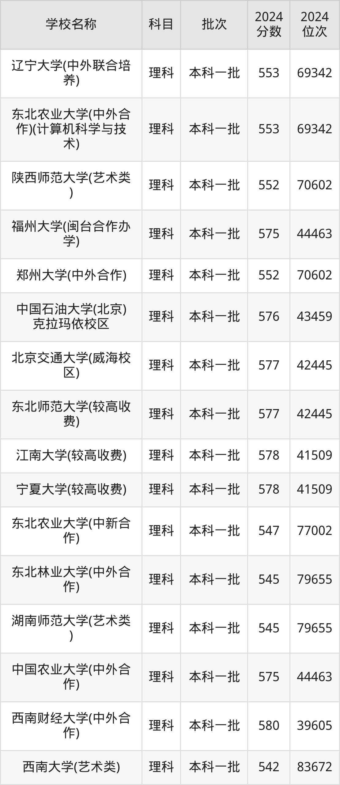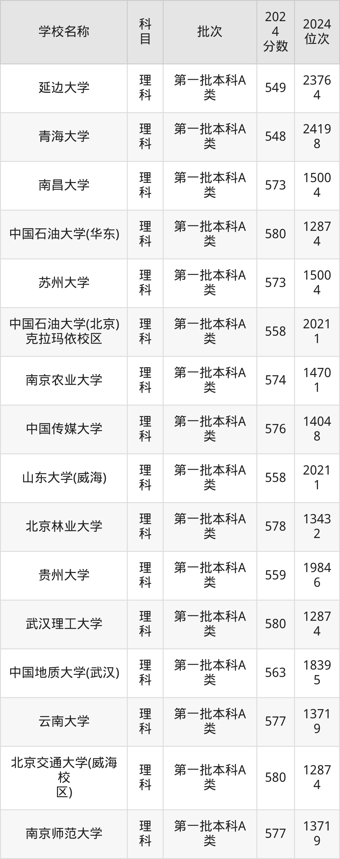 山西高考理科共有71所211大学在540到580分之间录取,包含中国石油大学(华东)、北京交通大学(威海校区)、武汉理工大学、中国农业大学(中外合作)、河海大学、东北师范大学、北京林业大学、中国矿业大学(北京)、南京师范大学、云南大学。