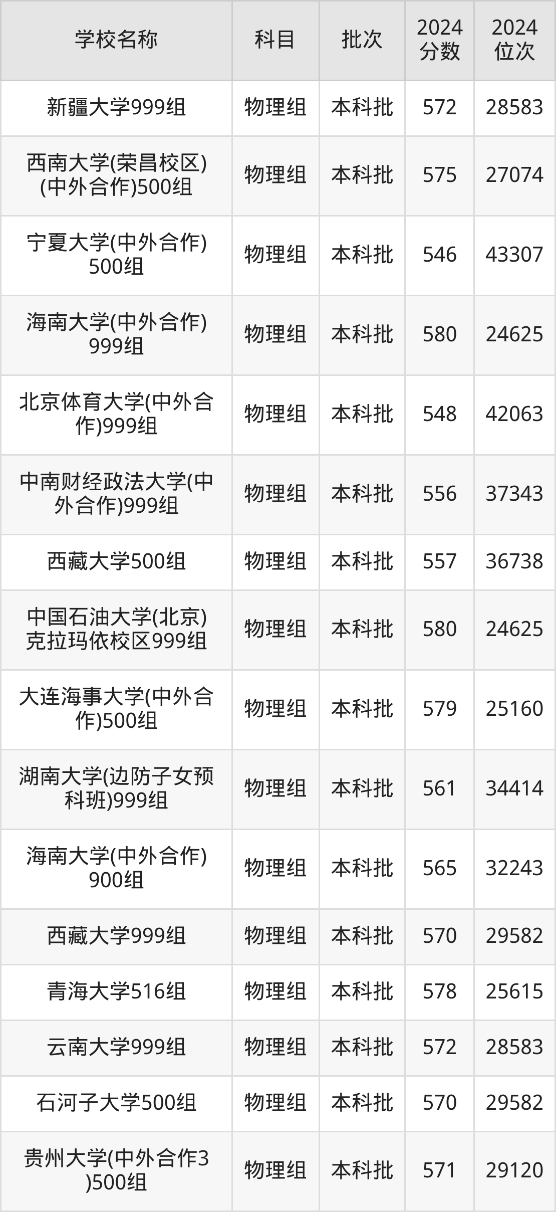 福建高考物理组共有20所211大学在540到580分之间录取,包含海南大学(中外合作)、中国石油大学(北京)克拉玛依校区、大连海事大学(中外合作)、青海大学、长安大学(中外合作)、新疆大学、东北林业大学(中外合作)、西南大学(荣昌校区)(中外合作)、云南大学(中外合作)、西南交通大学(安全科学与工程类)。