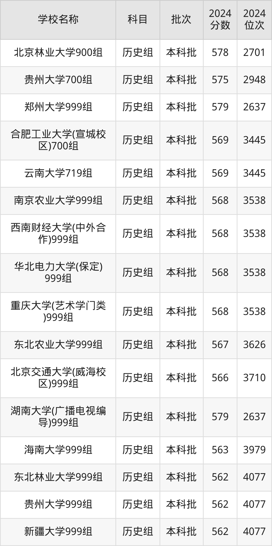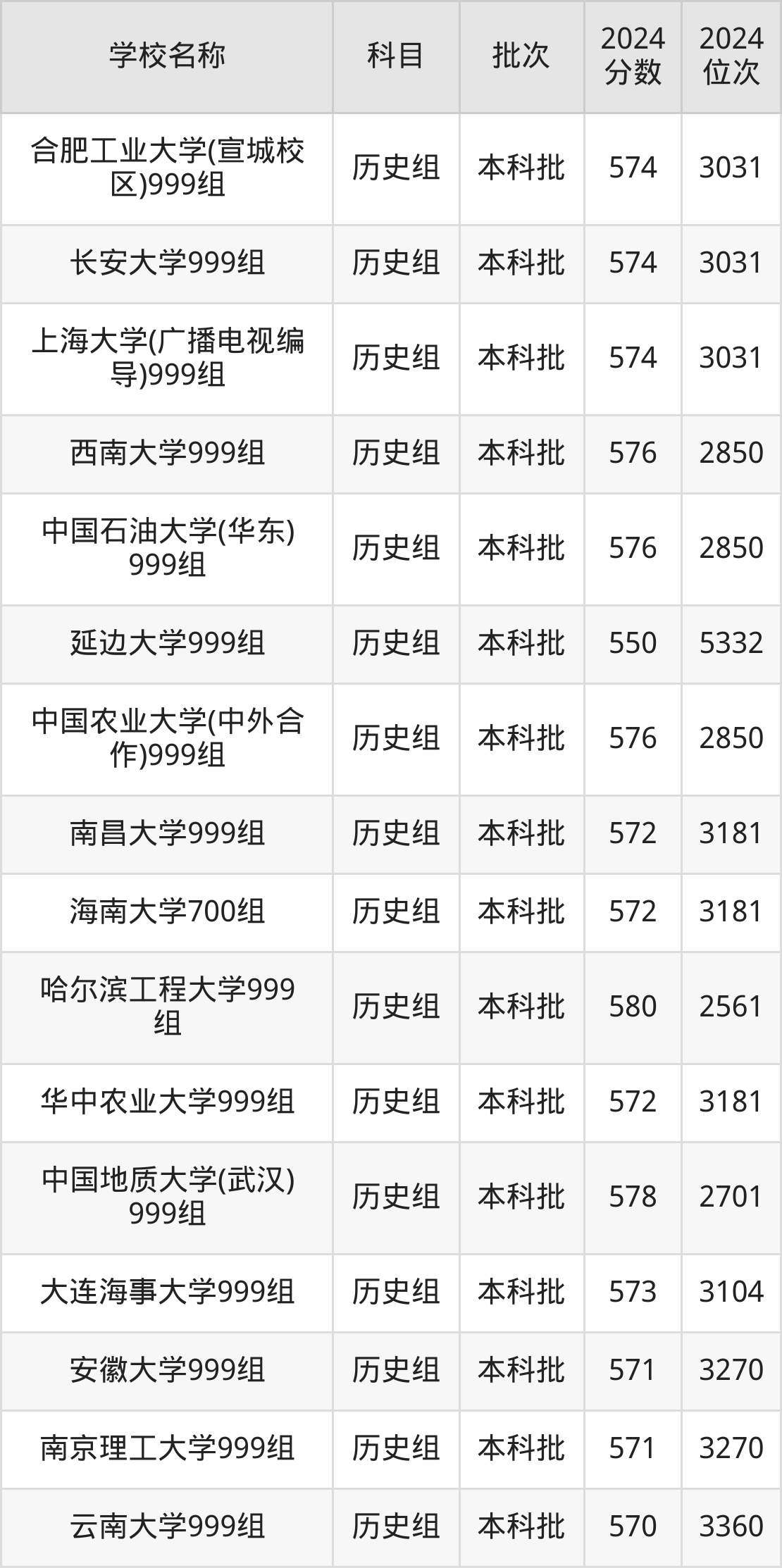 福建高考历史组共有42所211大学在540到580分之间录取,包含辽宁大学、哈尔滨工程大学、厦门大学(马来西亚分校)、安徽大学、北京化工大学、华北电力大学、西南大学(荣昌校区)、湖南大学(艺术类)、郑州大学、中国药科大学。