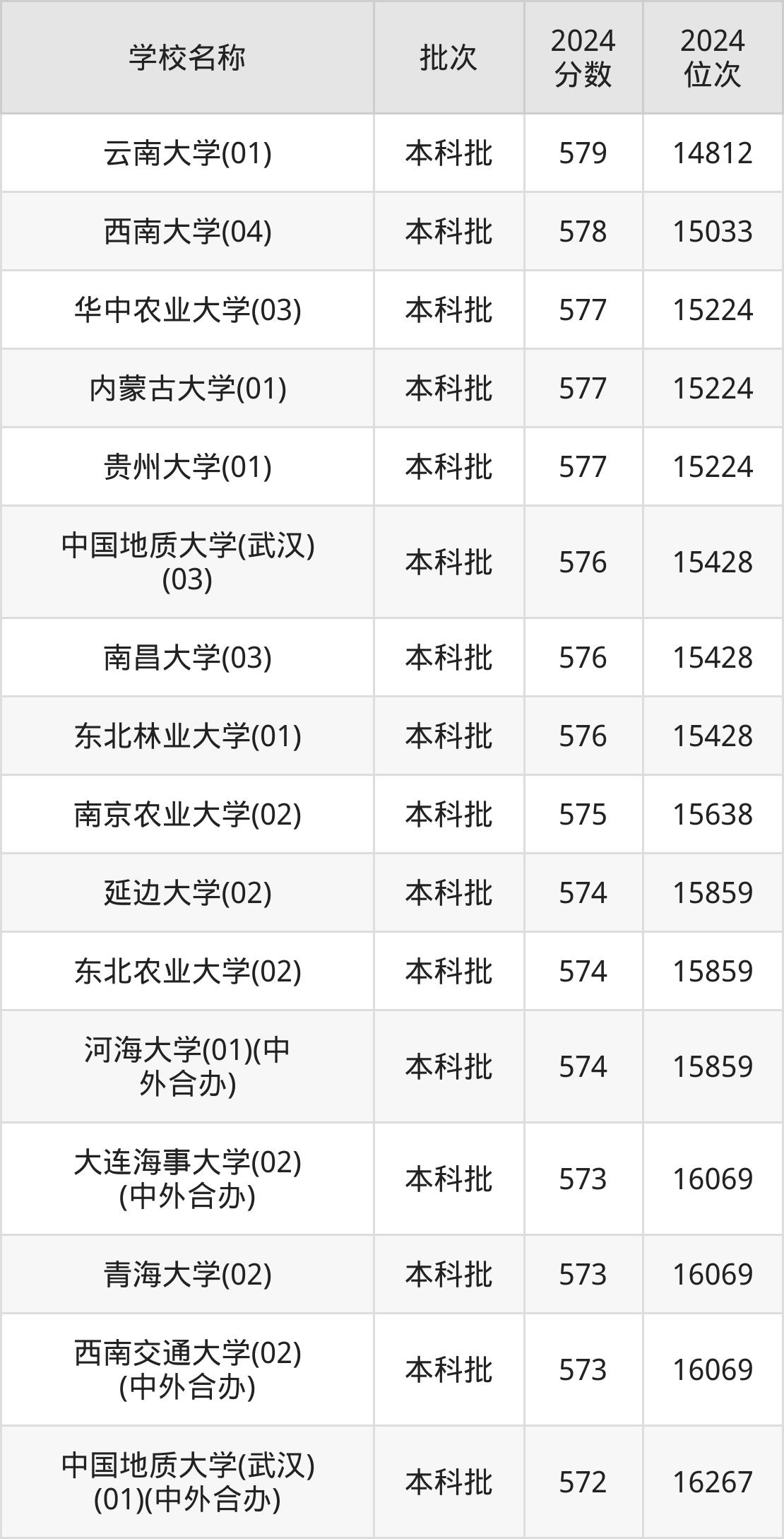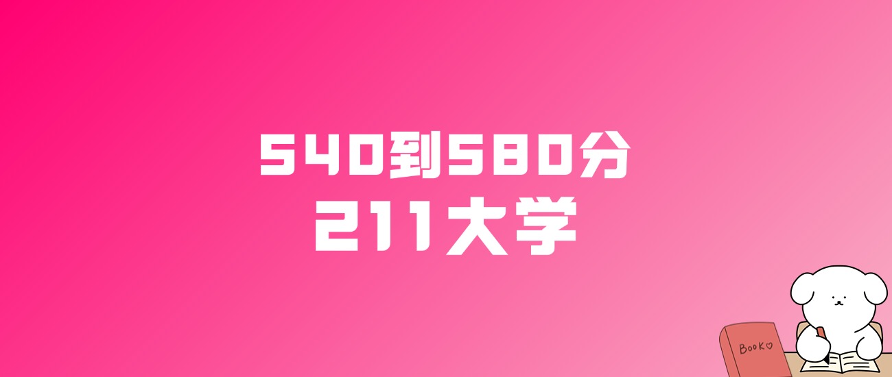 540到580分的211大学有云南大学、西南大学、华中农业大学、内蒙古大学、贵州大学、中国地质大学(武汉)、南昌大学、东北林业大学、南京农业大学、延边大学等。